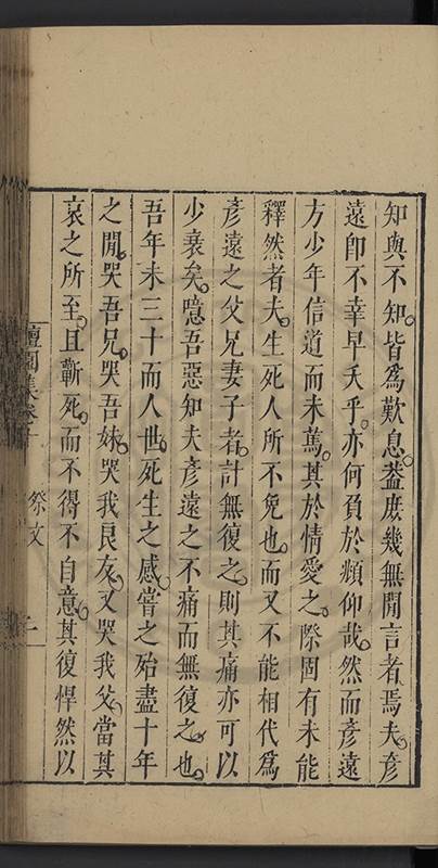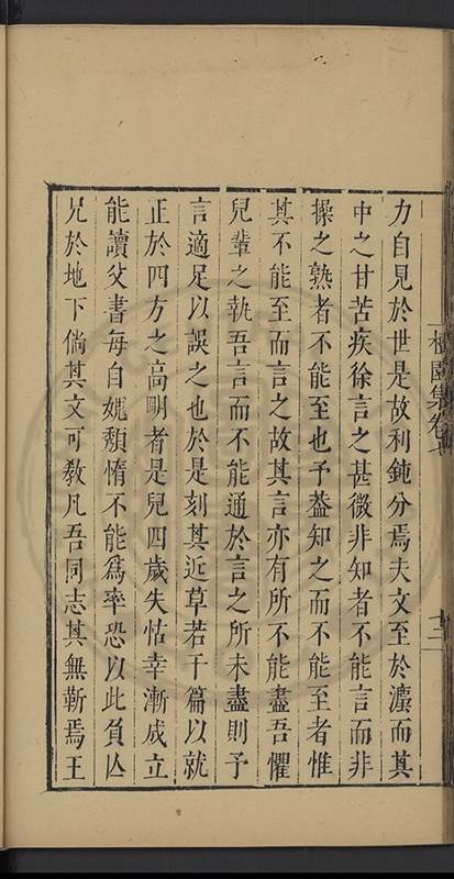 哀誄而外不過題跋數剛而已朙府乃欲彚萃為集而方駕於三君子之閒予竊媿之因 序次此意為一文以自解而久病不能捕思汝盍為我序之宜之以為文章之道本於六經而六經非文章也其所反覆諄切以垂教萬世者實在君臣父子夫婦昆弟朋友之倫其後以六經為粉藻即好古博貫之儒亦止咀其華而忘其實於是分文析字獵三古之毛羽以效用於文章而六經之道遁矣叔父雖未出而事主然於
