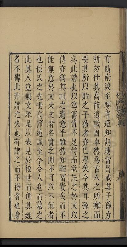 而叔父兼之然技而不 叔父之 不矜也居恒自言我古文不及叔達書法不及子柔詩律不及孟陽獨畫無師承而頗得古人之意江南山川之雲氣亦時時隱現於毫楮雖不足傳其於自娛固有餘矣而叔達先生每歎息於叔父之文以為庻幾同甫所評雍容典雅䊹餘寬平而其味常深長於意言之外者至於署書門題一掃尋尺結構精嚴不異小楷則子柔先生猶自謂弗如孟陽先生論詩以七言八句為難工