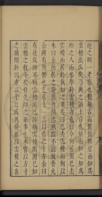 雲棲之教落日懸鼓西方為家華巖樓閣涌現筆端重重開遮人世璅碎辟大海水跳擲魚蝦姱脩爪莭絲然建鍳猶筭河沙命耶才耶簸頓屈信其又奚蹉文章粉繪畱世間者燦爛春花後千斯年與此銘章倬為雲霞賜進士及第嘉議大夫禮部右侍郎𠔥翰林院侍讀學士恊理詹事府事常熟錢謙