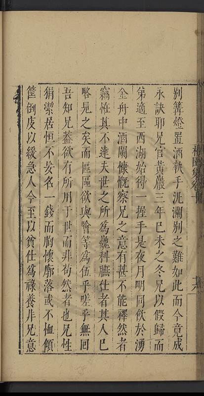 氣宏放不可绁覊自其兄翰材君蚤世始撫心下氣求工應舉之業以慰其父母更十餘年與予偕舉扵南京當是時長蘅之年漸長而又以為不逮其父雖橋褐超時其中固已不能無厭薄之矣再上公車不苐又再自免㱕皆賦詩以見志自是絕意進取誓畢其餘年暇日以讀書養母謂人世不可把翫將刳心息影精研其所學扵