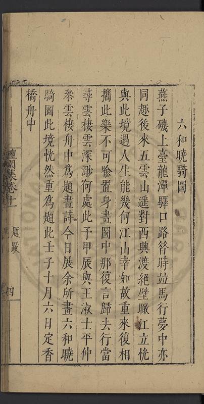 以示同志輒謂得勝國諸人氣韻西湖友人聞子將鄒方囘皆欲奪之而不得時時開看以自娛樂非予所甚好不與易也天啟元年辛酉午日檀園薄醉題此