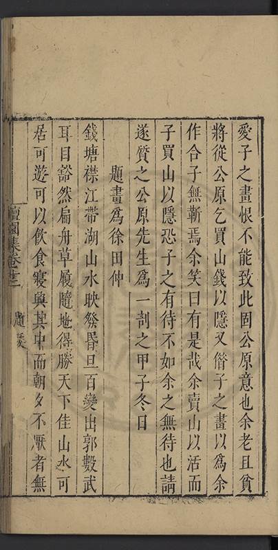 愛子之畫恨不能致此固公原意也余老且貧將從公原乞買山錢以隱又𠎥子之畫以為余作合子無靳焉余笑曰有是哉余賣山以活而子買山以隱恐子之有待不如余之無待也請遂質之公原先生為一剖之甲子冬日