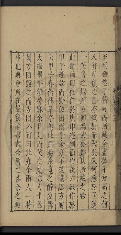 至焉雖然子薪死而所藏余畫皆不知屬之何人并所償之冊亦破廚而飛矣夫何惡於子遂一笑書之以歸方囘為武林鄒氏所藏之物