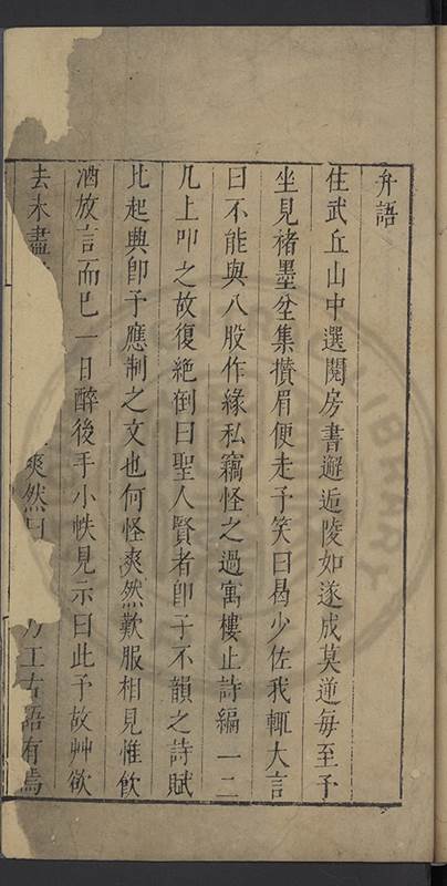 住武丘山中選閱房書邂逅陵如遂成莫逆每至予坐見褚墨坌集攅眉便走予笑曰曷少佐我輒大言曰不能與八股作緣私竊怪之過寓樓止詩編一二几上叩之故復絕倒曰聖人賢者即子不韻之詩賦比起興即予應制之文也何怪爽然歎服相見惟飲酒放言而已一日醉後手小帙見示曰此予故艸欲去未盡 爽然曰 工古語有焉