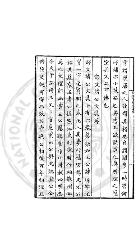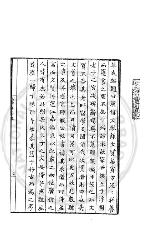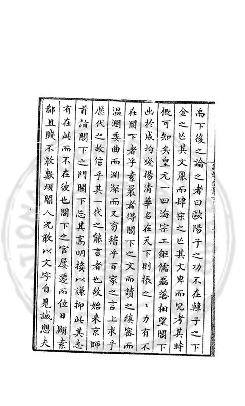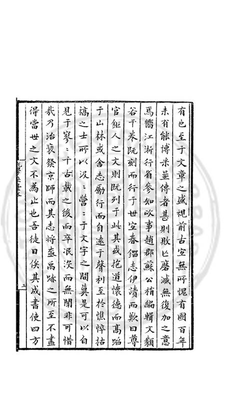 盖聞文為載道之器尚矣道弗明何有於文哉氣有升降時有污隆而文随之六経之文其理明其言約其事覈弗可及已自是離文與道而為二斯道湮微文遂為儒者之未藝雖其才之傑然若司馬遷揚雄班固後世猶有議之者凌夷至于隋唐其敝極矣昌黎韓子起而振之至於宋敝又極矣廬陵歐陽子起而振之歐陽子以為韓之功不在