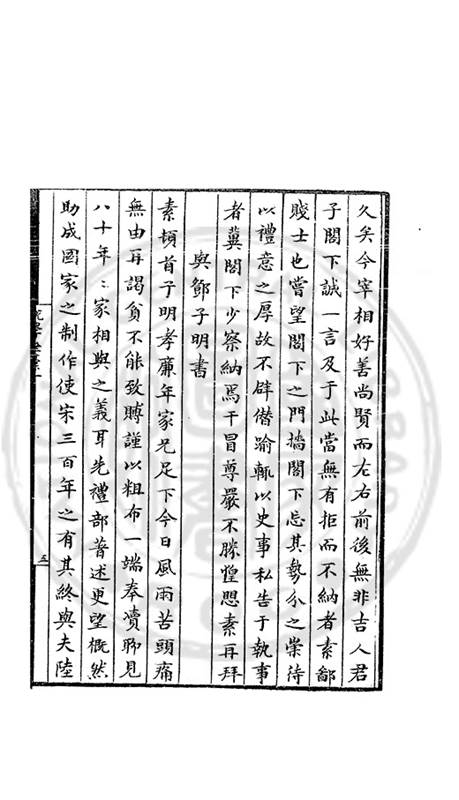 素頓首子明孝廉年家兄足下今日風雨苦頭痛無由再謁貧不能致賻謹以粗布一端奉賣聊見八十年年家相與之義耳先禮部著述更望概然助成國家之制作使宋三百年之有其終與夫陸