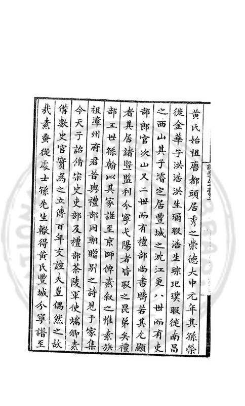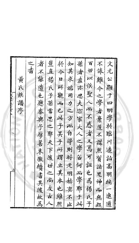 禮部之孫不及書乃以翰本補之而翰本復載諸暨監利弋陽譜而都頭之子孫傋矣接黃氏在江南家多自素所見唯此譜與旴江唐江西兵馬莭使諱表諩浦城譜號為詳傋素高祖贈承仕郎府君莭使之後也友人黃哻謀合黃氏譜以攷其兮合異同頋安得皆有賢子孫如翰之葆其遺書哉素視豐城兮寧盖由其先俱能敦詩書尚禮義繼仇衍其世澤于無窮者尚有考焉