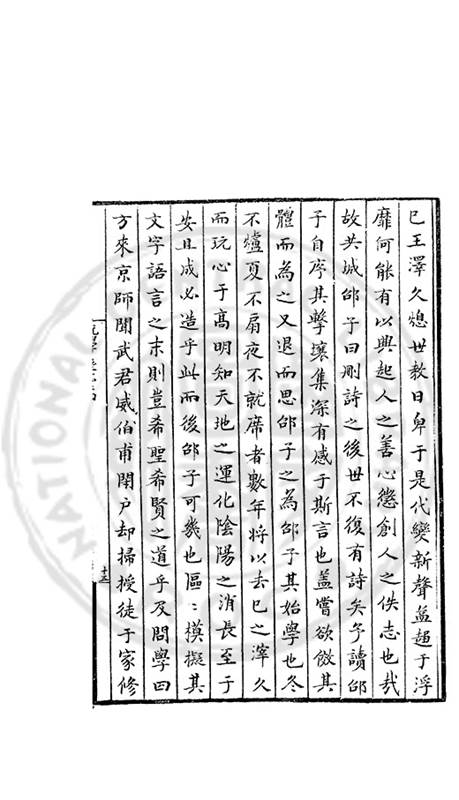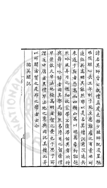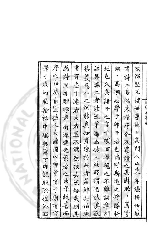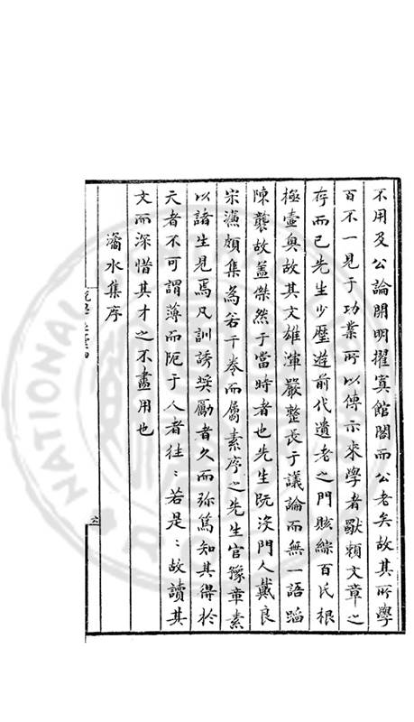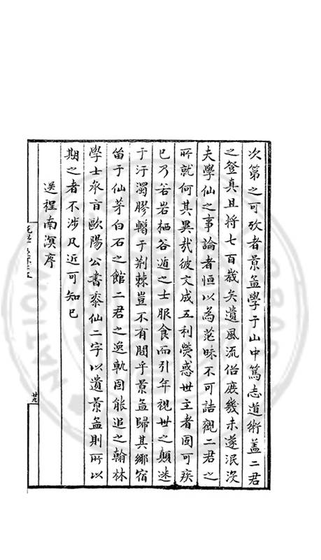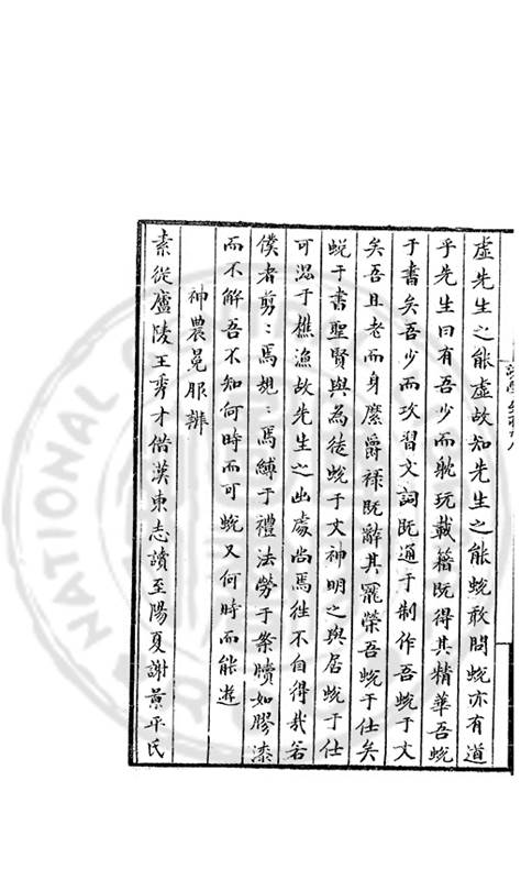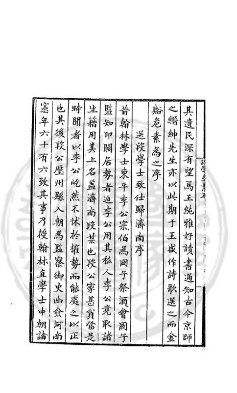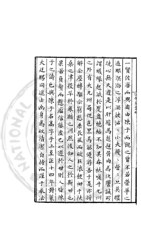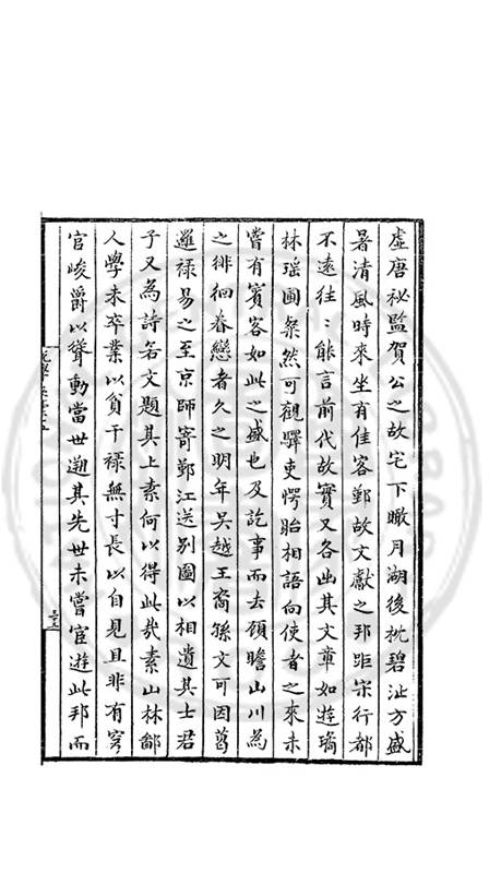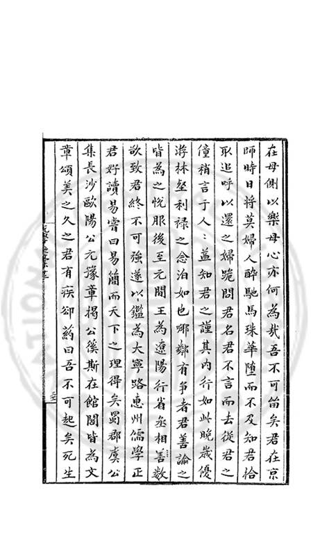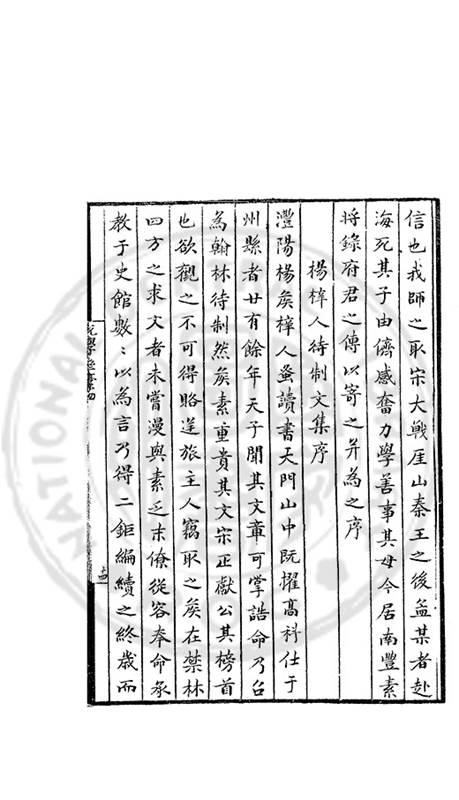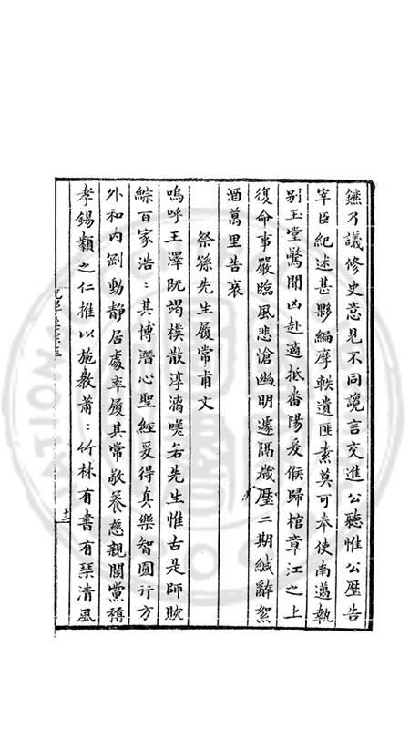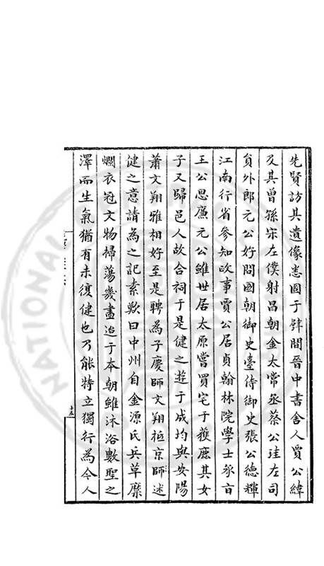 禹下後之論之者曰歐陽子之功不在韓子之下金之亾其文麗而肆宋之亾其文卑而冗考其時概可知矣皇元一四海宗工鉅儒磊落相望閣下出於成均踐楊清華名在天下則振之之力有不在閣下者乎素曩者得閣下之文而讀之縝密而溫潤委曲而淵深而又□稽乎百家之言上求乎歷代之故信乎其一代之能言者也故始来京師首詣閣下之門閣下㤀其高明接以謙抑此其志有在此而不在彼也閣下之官屢遷而位日顯素鄙且賤不敢數煩閽入况敢以文字自見誠愳夫