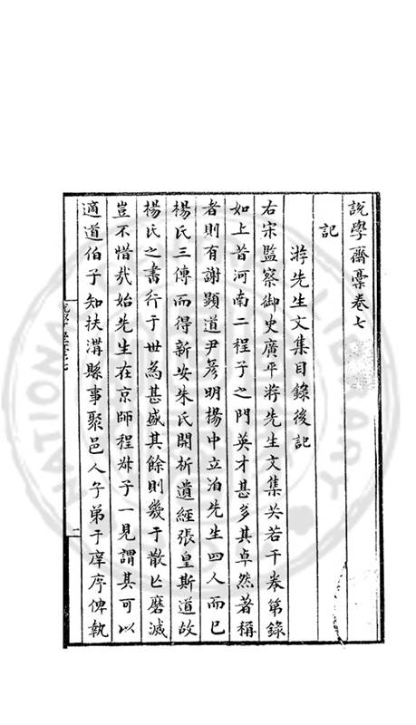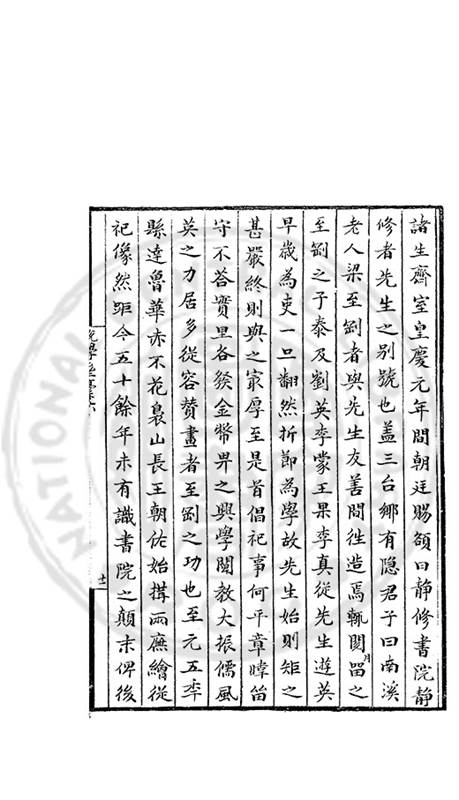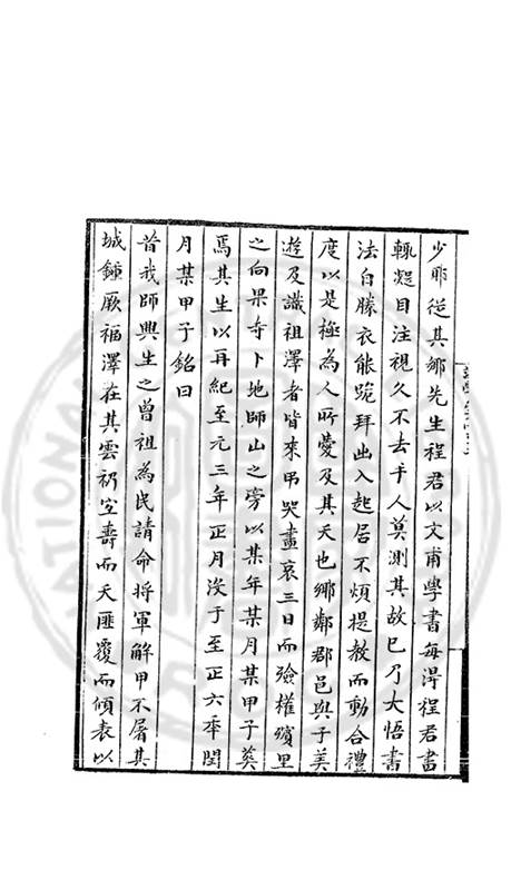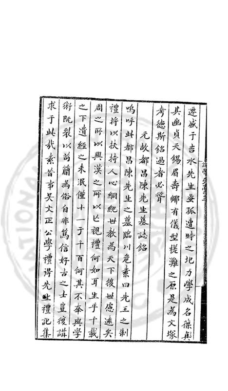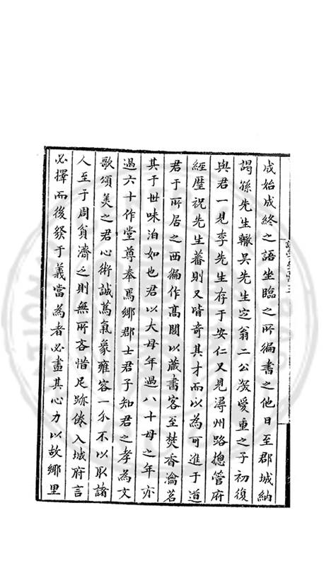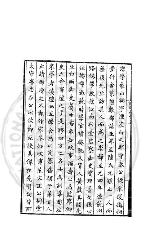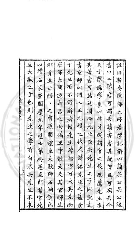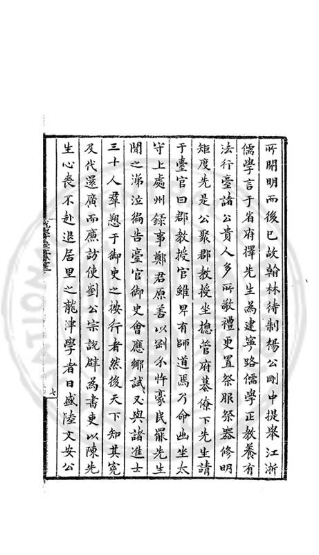 所開明而後已故翰林待制楊公剛中提舉江浙儒學言于省府擇先生為建寜路儒學正教養有法行臺諸公貴人多所敬禮更置祭服祭器修明矩度先是公聚郡教授坐摠管府慕僚下先生請于臺官曰郡教授官雖卑有師道珠乃命出坐太守上處州録事鄭君原善以剛介忤豪民罷先生聞之涕泣徧告臺官御史會應鄊試又與諸進士三十人羣愬于御史之按行者然後天下知其寃及代還廣而廉訪使劉公宗說辟為書吏以陳先生心喪不赴退居里之龍津學者日盛陸文安公