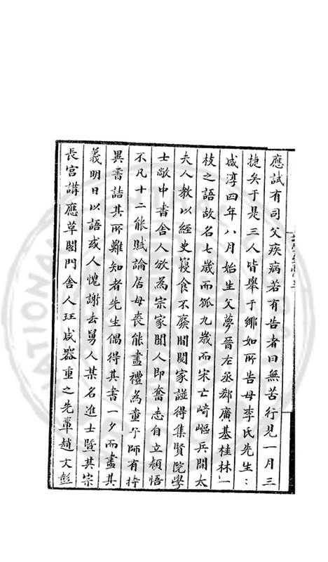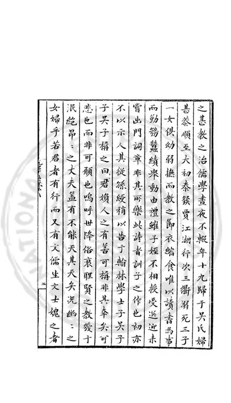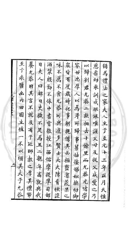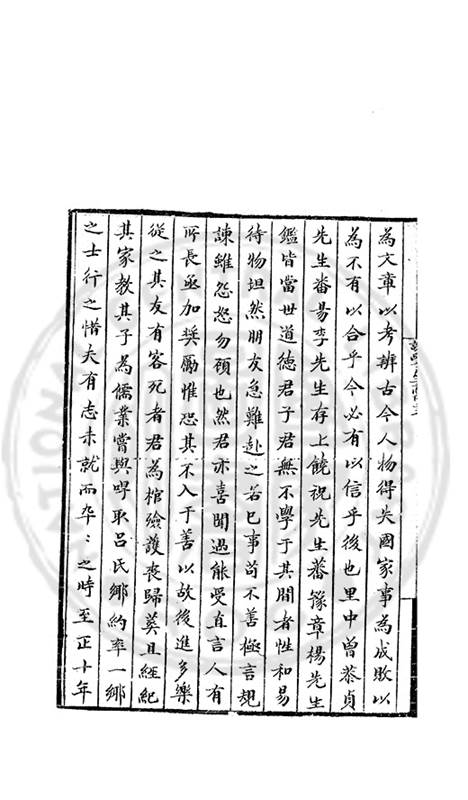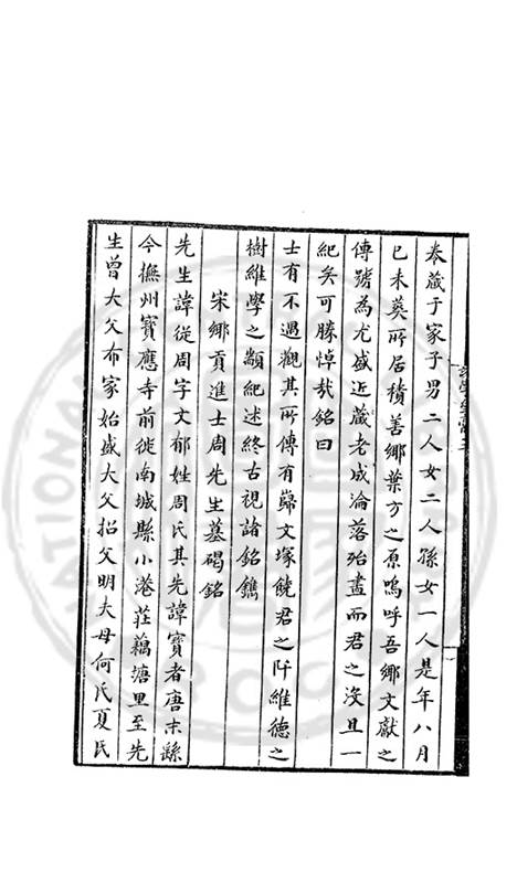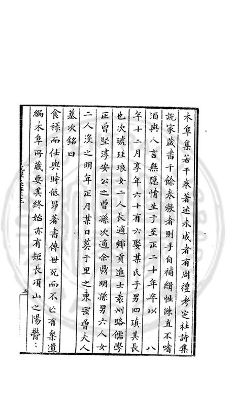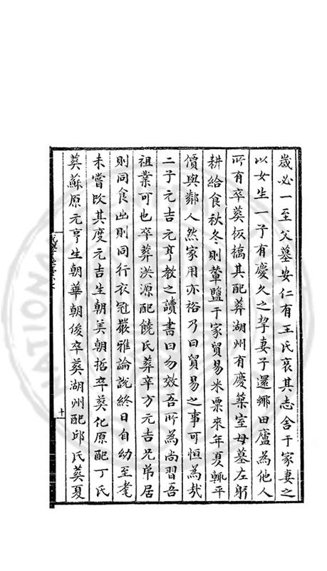 生天資剛毅若不可犯而在親側必婉容愉色振賓友必盡歡治家甚嚴卑者有遇督責無恕夫人蒋氏寬解之則曰君儒家女不聞易曰家人有嚴君耶乃課子孫讀書非家事不令須臾廢學鄊人以貧乏疾病告者眎其力之可及而食之葯之所著書有李論上下萹有楮錢論皆力詆𥼶 氏之說其詩文號□巢集若干卷先生生于咸淳六年正月卒于元至正四秊六月得年七十有四夫人先七月以卒子男四人長惟賢也方待試禮部而科目輟監察御史以著書立言薦之惟志惟仁惟徳