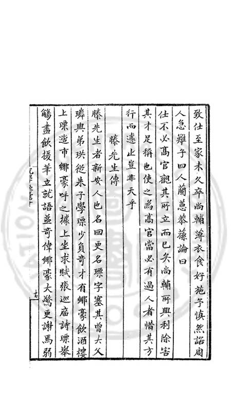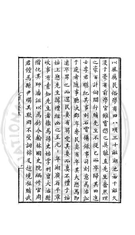 以風厲民俗學有田八頃三十畆湖池若干畆久沒于豪有前學官雖嘗愬之莫能直先生奮然理之豪百計伺間行賄先生不従已而卒歸其田進士李君曄紀其事刻石嘗攝録事司刻意為治訟于庭者随事聴决郡卒奪民妻有年其夫愬焉即逮卒罪之而還民妻有溺愛其妻而妻不禮于姑姑上愬先生據禮経出之至元元年湖廣省平章政事有素知先生者檄為掾史始掌刑曺大治縣僧仇其師潘誣以為鈔今翰林國史院編修官周君鏜為縣尹燭其欺㒺不受詞林及越境私賄武
