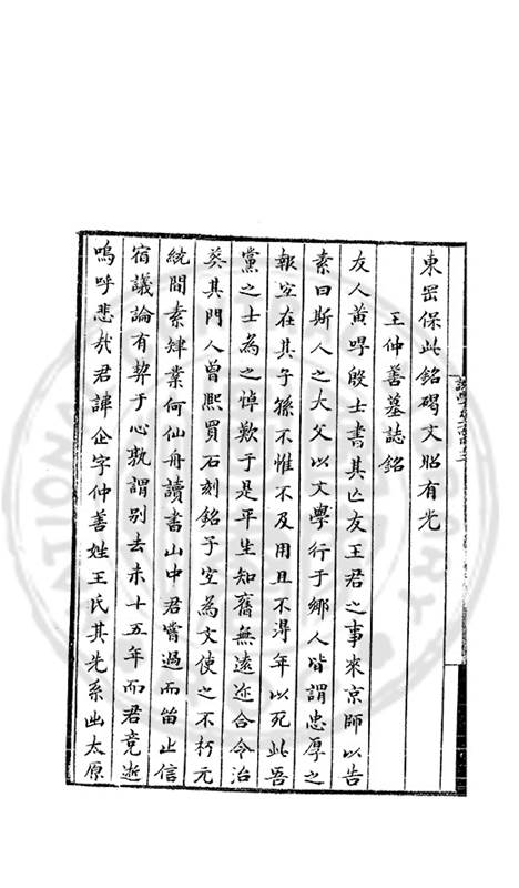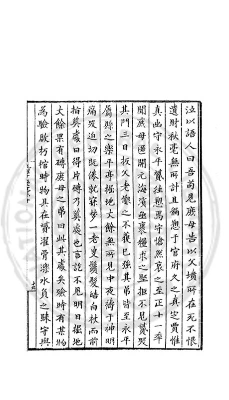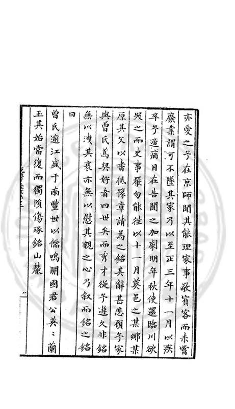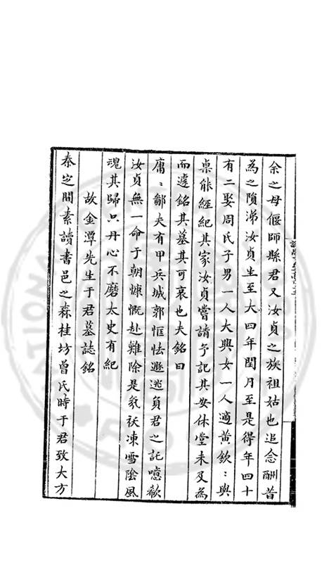 昔在宋末兩世聯姻內附之後事變多屯頋念寒末惟戴夫人買田築室懿此情親叔母幼孤先祖所愛風波屹立蚤聞世垓田疇匯廬保守無壊弥縫支柱姻族實頼壮而筮仕遊觀京師一命出宰止或尼之退䖏山谷優游清時鑿池種樹賔加追随推情及素念其貧弱繅籍扶持思誼匪薄書問之來盈于庭閣浪跡遠遊守望依託北使江南歸抵郡城咫尺不見簡書有程曾未幾何遂隔幽明