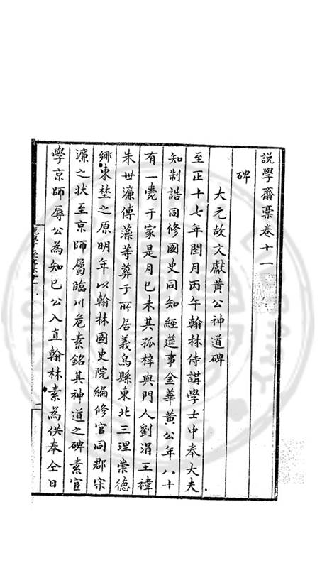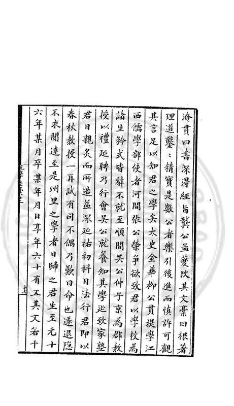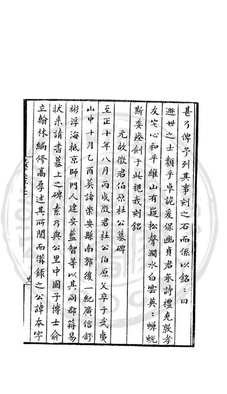 文憲公宋荊湖宣撫司幹辦公事張公山翁為文稱之大德四年遷従事郎亳興路稅務提領平章政事史公弼出鎮江西聞公名禮之于家受論語大學史公之父詣門謝曰吾兒子免曠官之責者先生之力也數郡遊士之無依者公皆館穀之九秊遷徵仕郎撫州路金谿縣丞十年大飢公毒所受中書牒質之官請𤼵粟賑之民頼以生佐縣尹趙君銓質正民田賦役以均皇度元年調承務郎江州路徳化縣尹獄為之空明年延祐元年以年及移書請致其事授奉訓大夫瑞州路摠管府判