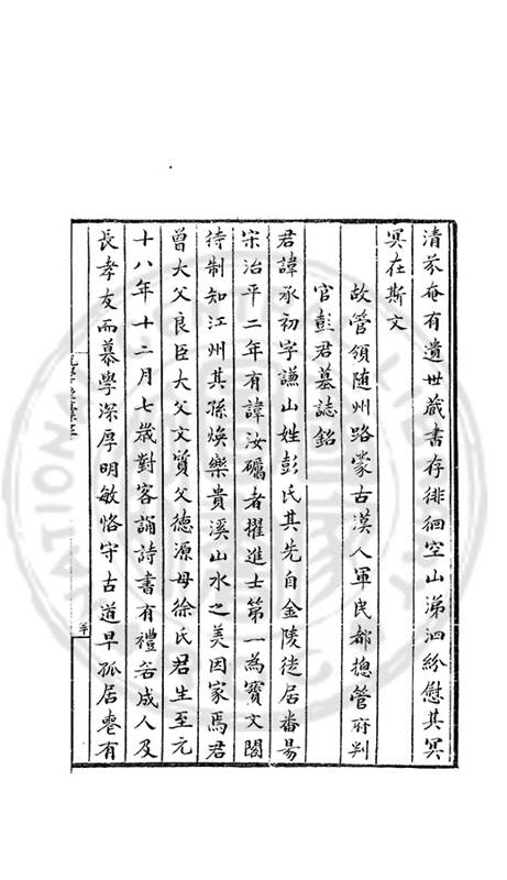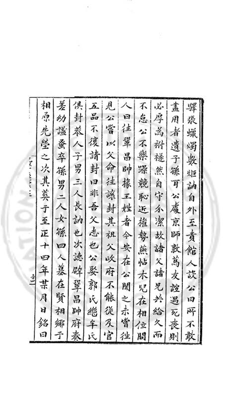 官未幾病卒于江州公天性樂易無老幼待之以誠與人言𢢽𢢽詳盡故咸樂親之生淳祐二年七月母利氏武安軍掌書記登之女娶熊氏子男二人女三人孫男三人曾孫男二人延祐三年某甲子葬公于南城鄊之南原村依公之友故翰林學士吴文正公之墓公有樸齋集三十卷藏于家素公之外孫也謹述所聞于平昔者求銘當世之君子以俟采擇焉