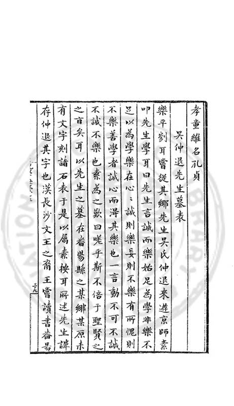樂平劉耳嘗従其鄊先生吴氏仲退来遊京師素叩先生學耳曰先生言誠而樂始足為學非樂不足以為學樂在心心誠則樂𡚶則不樂有所愧則不樂善學者誠心而淂其樂也一言動不可不誠不誠不樂也素為之歎曰嗟乎斯不倍于聖賢之之𣅀矣耳以先生之墓在畨易縣之某鄊某原未有文字刻諸石表不是以属素按耳所述先生諱存仲退其字也漢長沙文王之裔王嘗讀書畨易