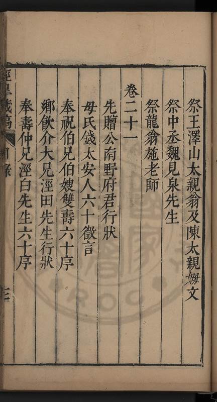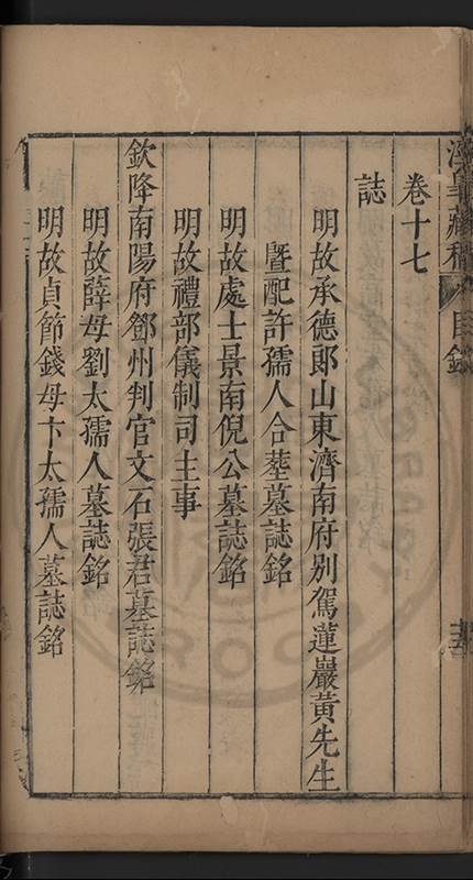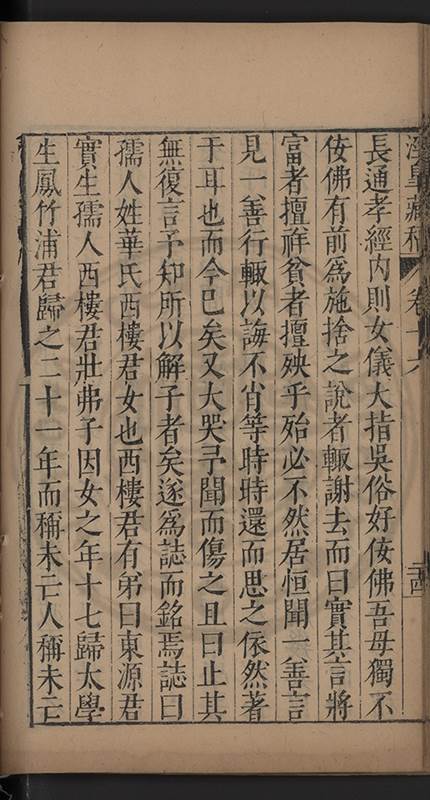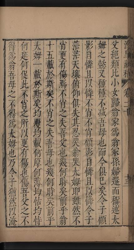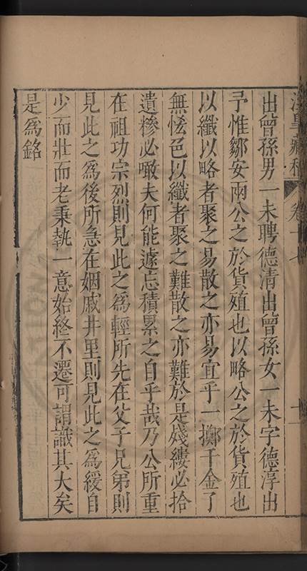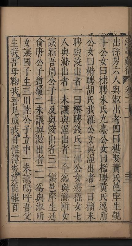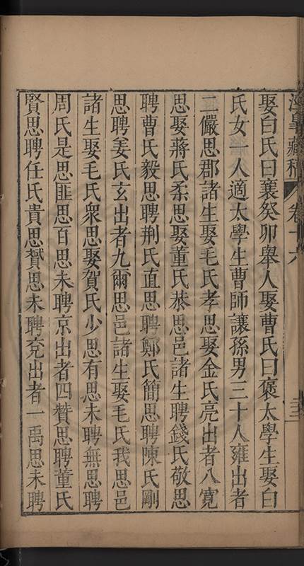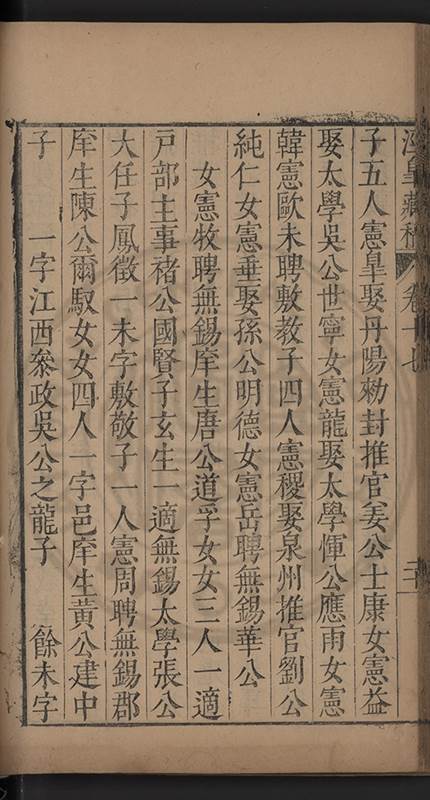 俱與溉出檖聘萬氏邑庠生卓如公女國子生同菴公孫女餘未聘孫女二與溉出者一許字國子生心澤吳公子明光祿寺監事涘湖公孫右春坊右諭德兼翰林院侍讀澤峯公曾孫與演出者一未字
