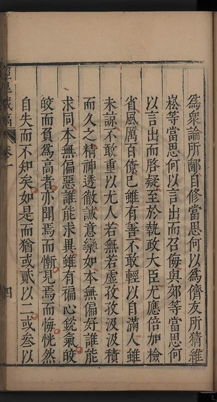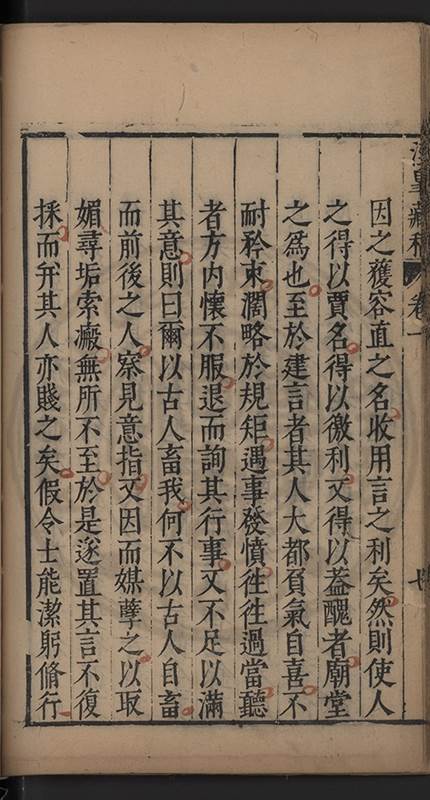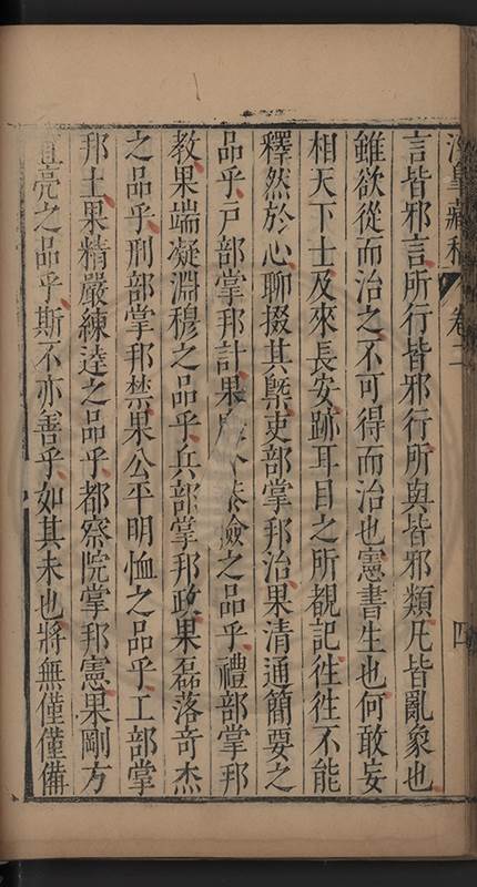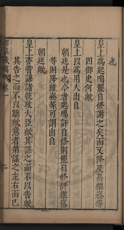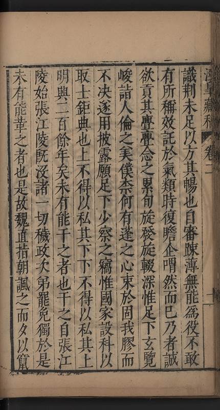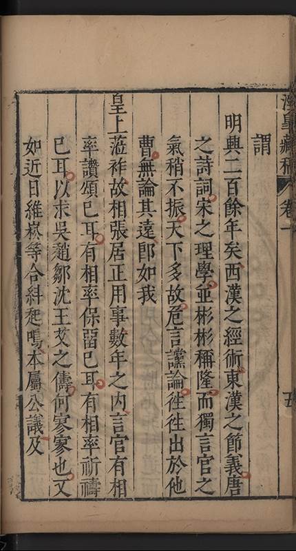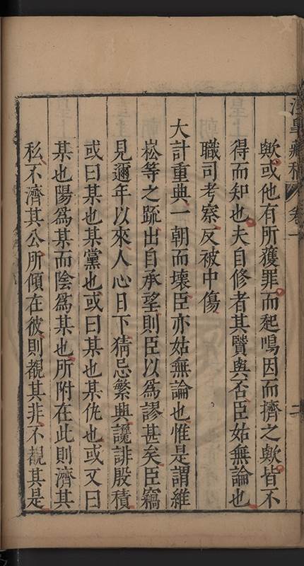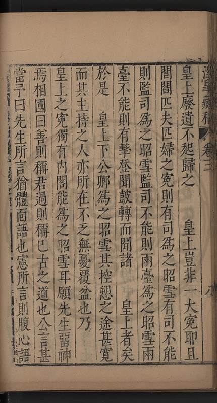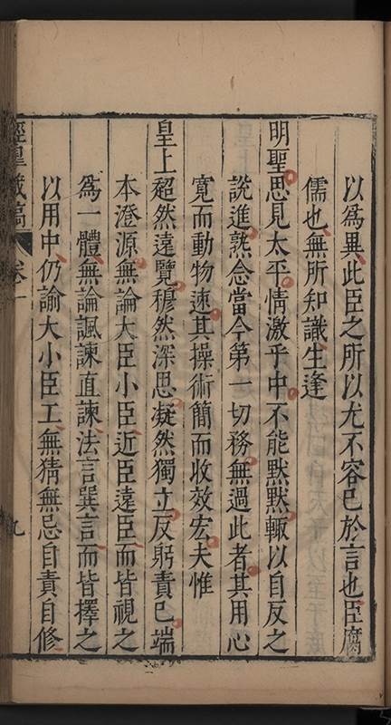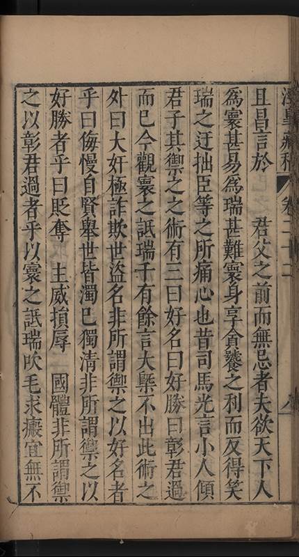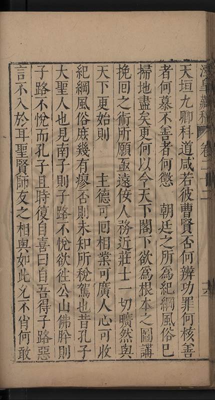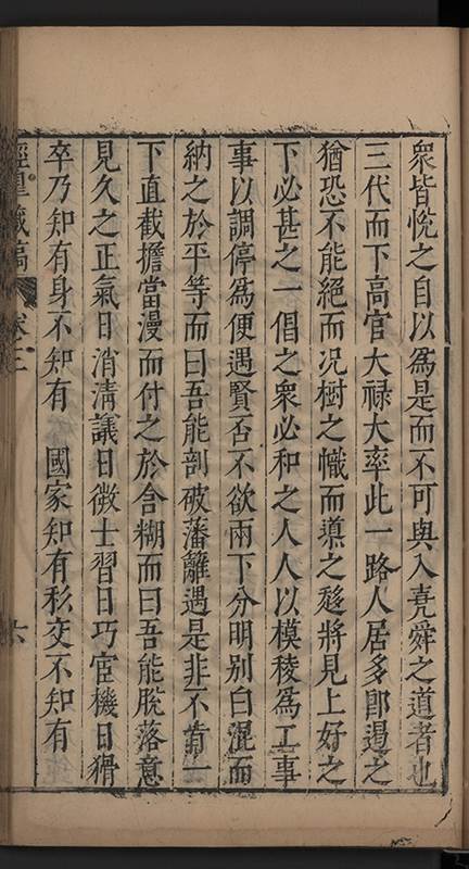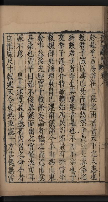 朝廷之上果何如耶𠃔不能詳請舉其略近見吏科給事中陳某言路一疏大可異焉彼悍然以言路自任而謂出於臺省爲蕩蕩平平不出於臺省爲傍蹊曲徑不知言路者天下之公非臺省之私也出於公即蕩蕩平平出於私即傍蹊曲徑陳三謨曾士楚輩曷𡮢不臺不省不言竟以爲何如也其以今日爲臺諌者上自乗輿下及宰執内從旃厦外迨閭閻近由警蹕遠至邊徼何事不得言言路不可謂塞𨿽一學究得上書一市井傭奴得撃