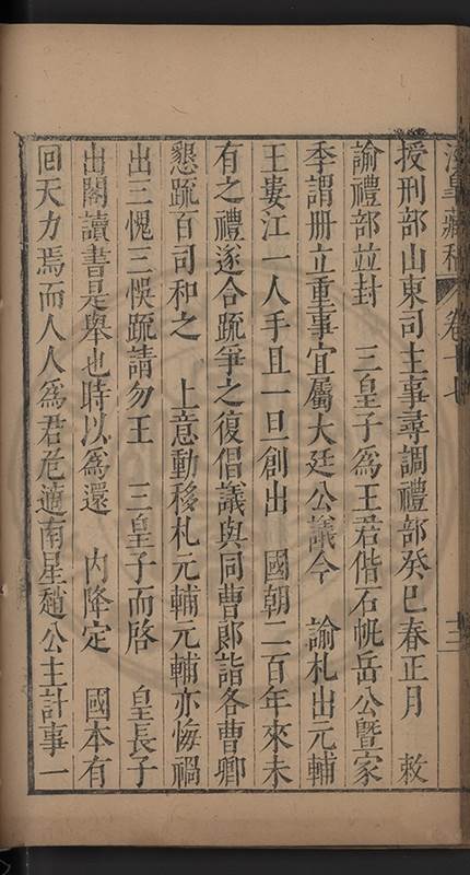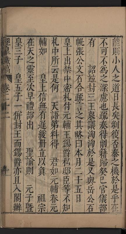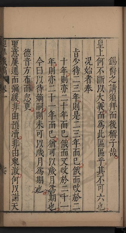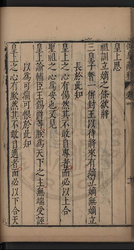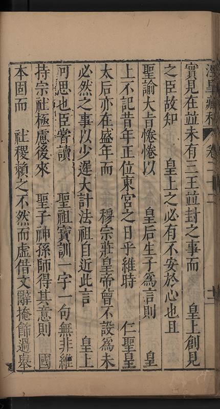 實見在竝未有三王竝封之事而 皇上創見之臣故知 皇上之必有不安於心也且 聖諭大㫖惓惓以 皇后生子爲言則 皇上不記昔年正位東宮之日乎維時 仁聖皇太后亦在盛年而 穆宗莊皇帝曾不設爲未必然之事以少遲大計法祖自近此言 皇上可思也臣𡮢讀 聖祖寶訓一字一句無非維持宗社極慮後來 聖子神孫師得其意則 國本固而 社稷賴之不然而虚借文辭掩飾過舉