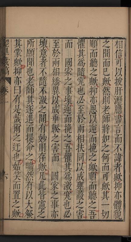 衆之所共喜以爲必成而獨籌其敗有衆之所共讁以爲必敗而獨䇿其成初時聞者且信且疑甚而且駭徐而按之如合符節錢起莘𡮢言吾黨殊不乏有心人至推有眼者須首季時以此也