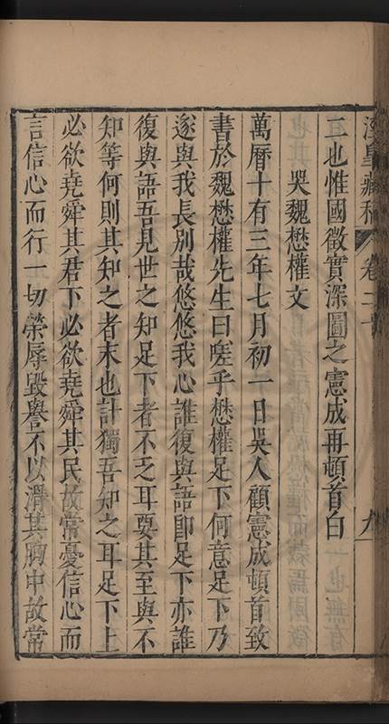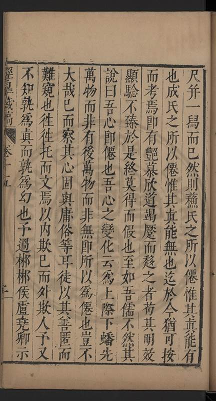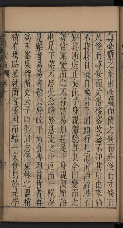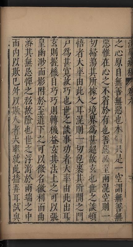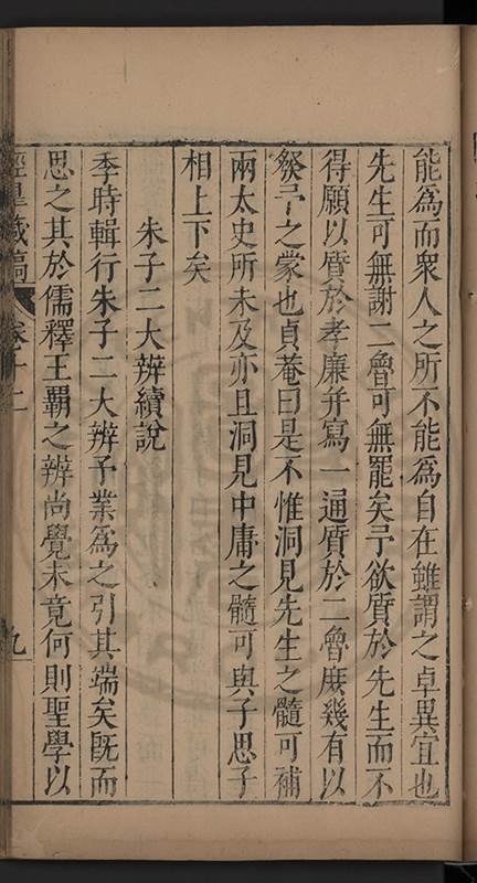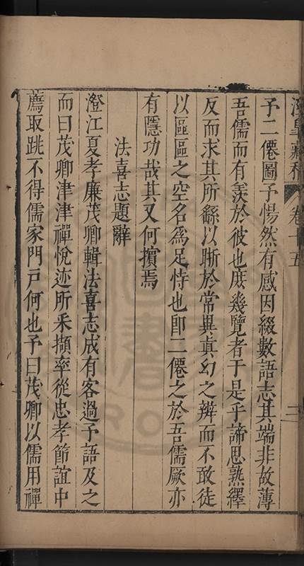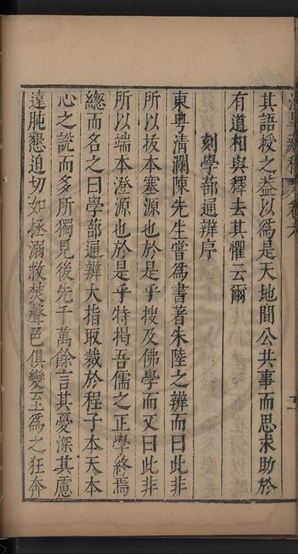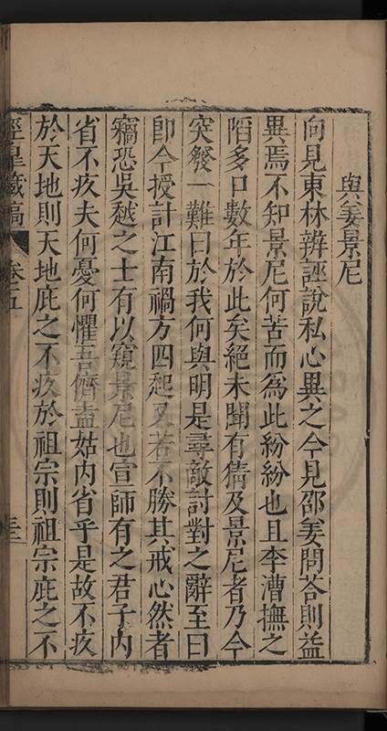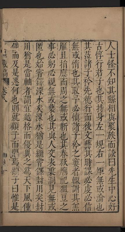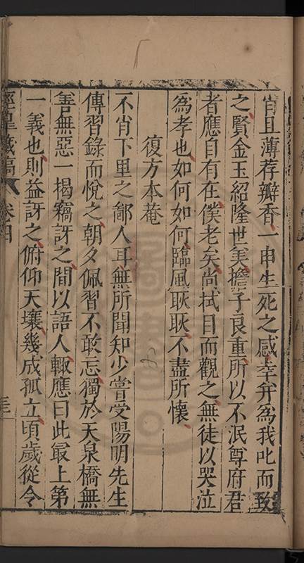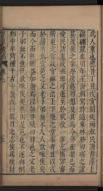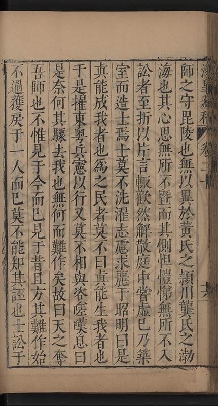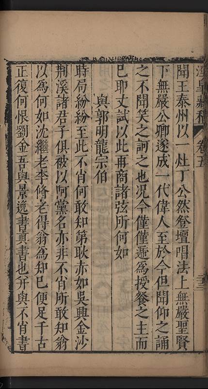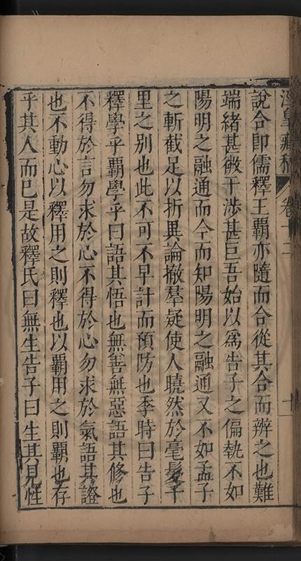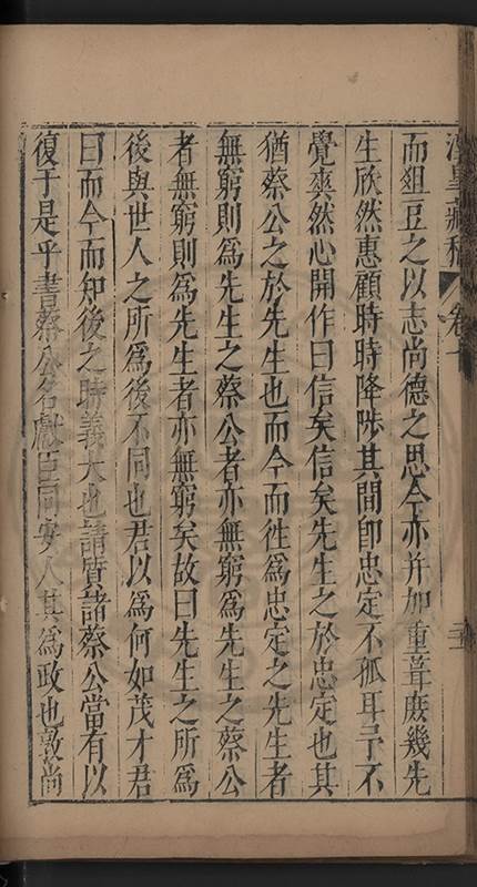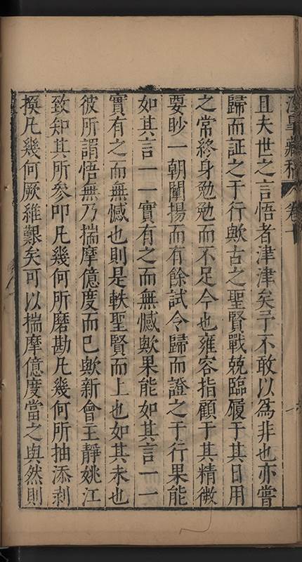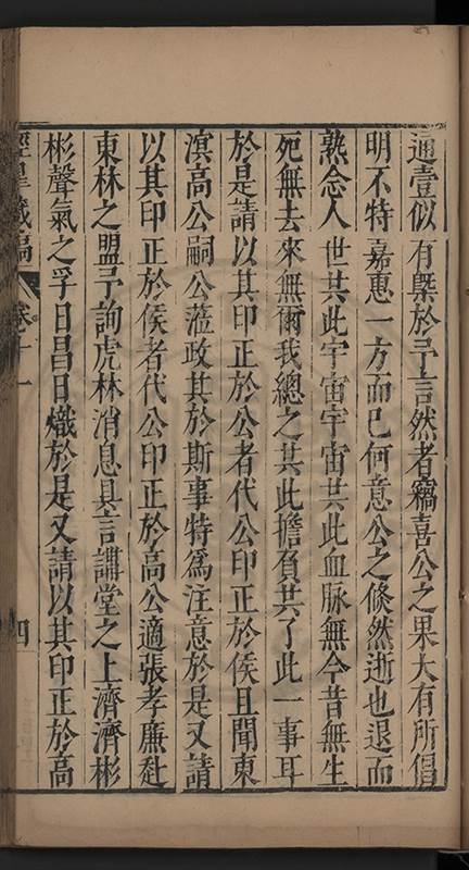 弟一日喟然發嘆予曰何嘆也弟曰吾嘆夫今人講學只是講學耳予曰何也曰任是天崩地䧟他也不管予曰然則所講何事曰在縉紳只是明哲保身一句在布衣只是傳食諸侯一句予爲俛其首又一日讀朱子集有曰海内學術之弊只有兩端江西頓悟永康事功若不竭力明辨此道無由得明謂予曰此弊於今亦然且昔也分而爲二今