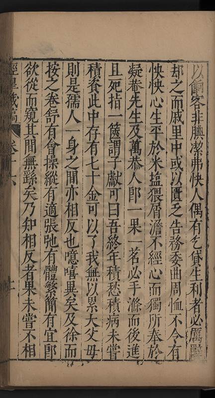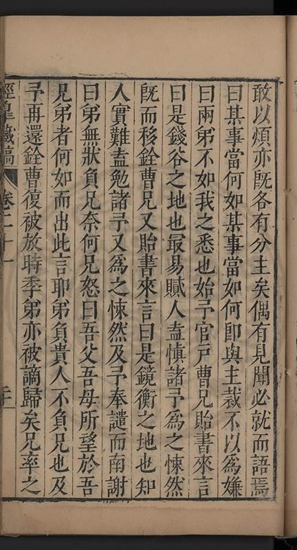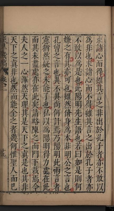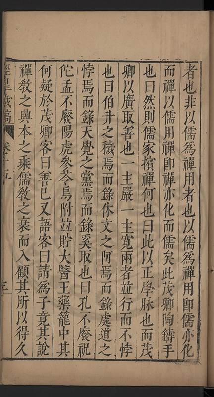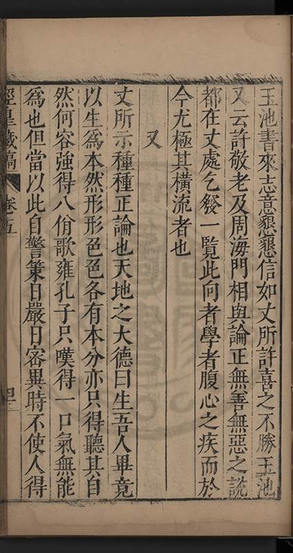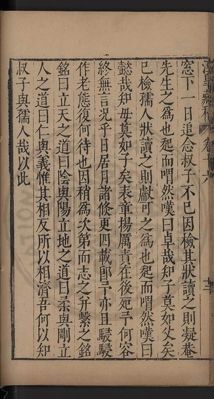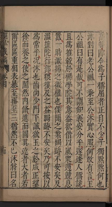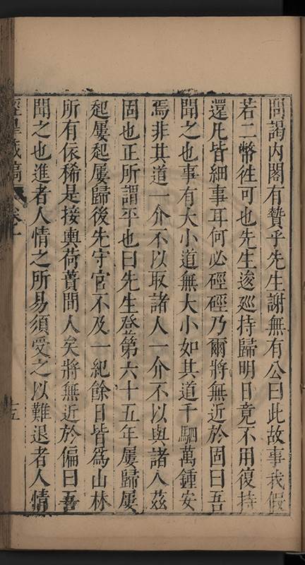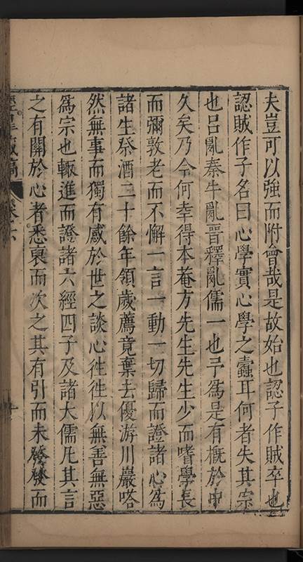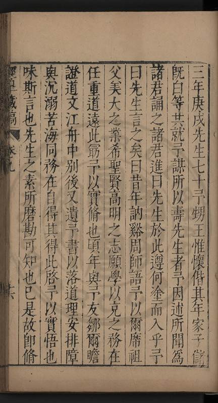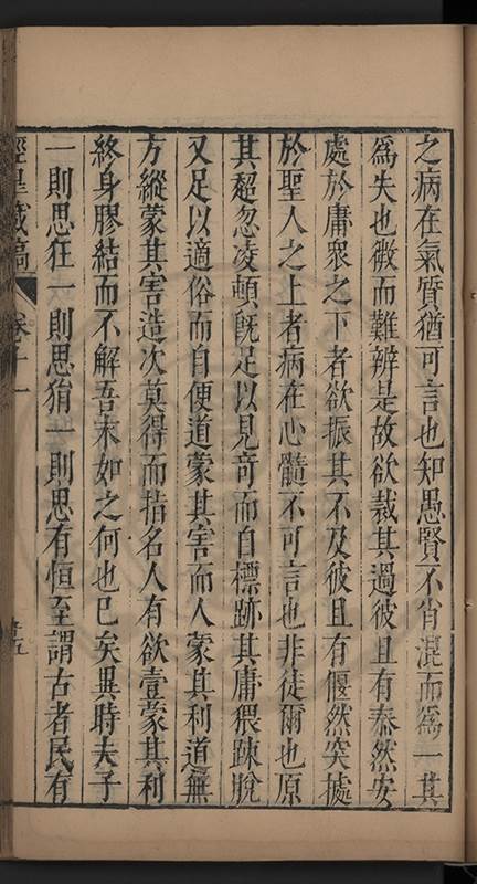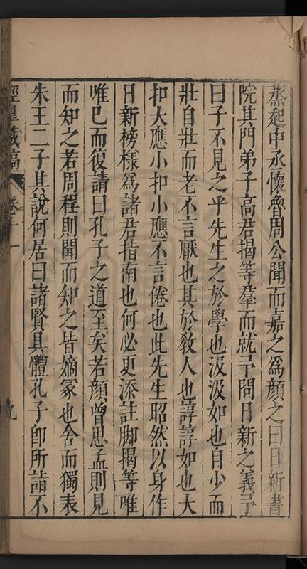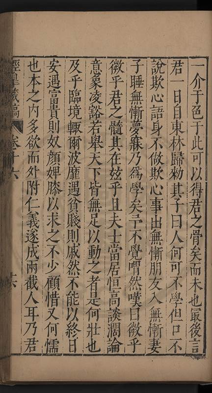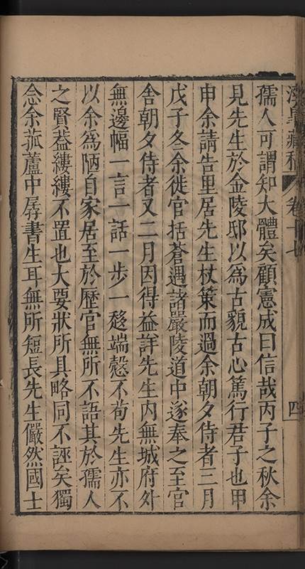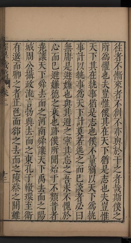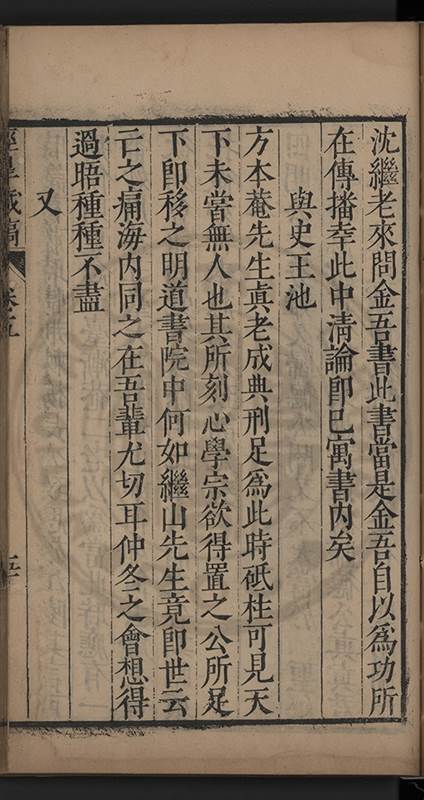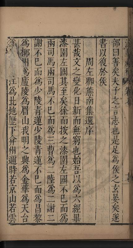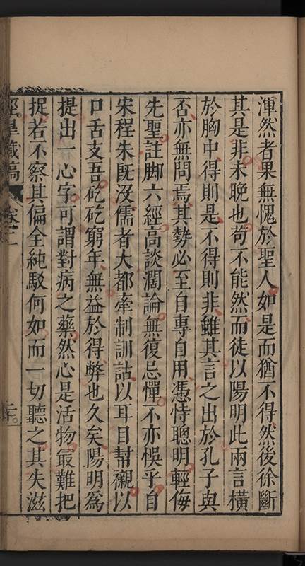 弟一日喟然發嘆予曰何嘆也弟曰吾嘆夫今人講學只是講學耳予曰何也曰任是天崩地䧟他也不管予曰然則所講何事曰在縉紳只是明哲保身一句在布衣只是傳食諸侯一句予爲俛其首又一日讀朱子集有曰海内學術之弊只有兩端江西頓悟永康事功若不竭力明辨此道無由得明謂予曰此弊於今亦然且昔也分而爲二今
