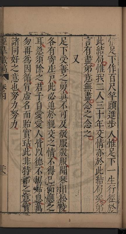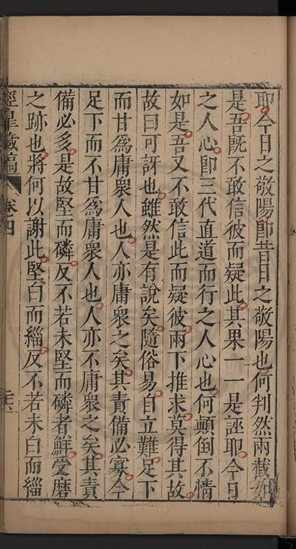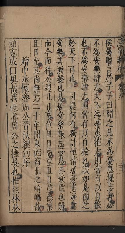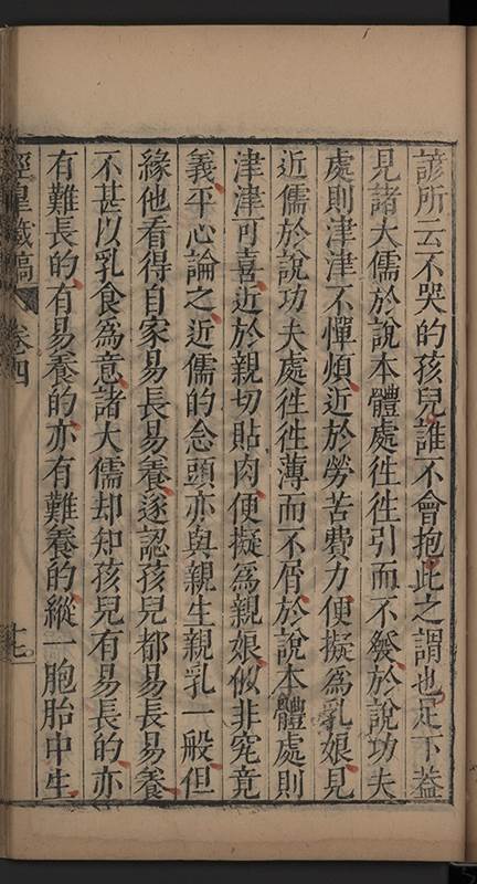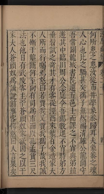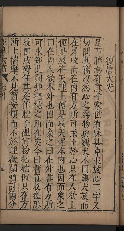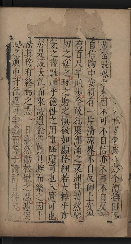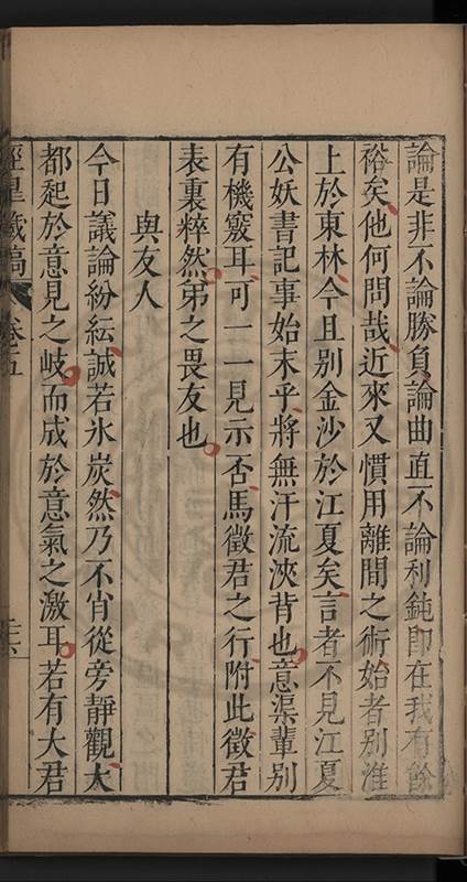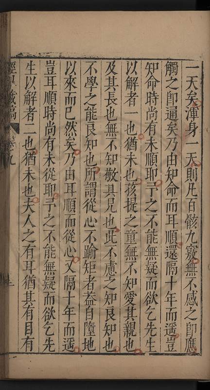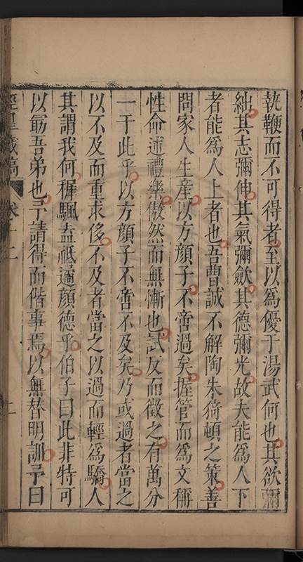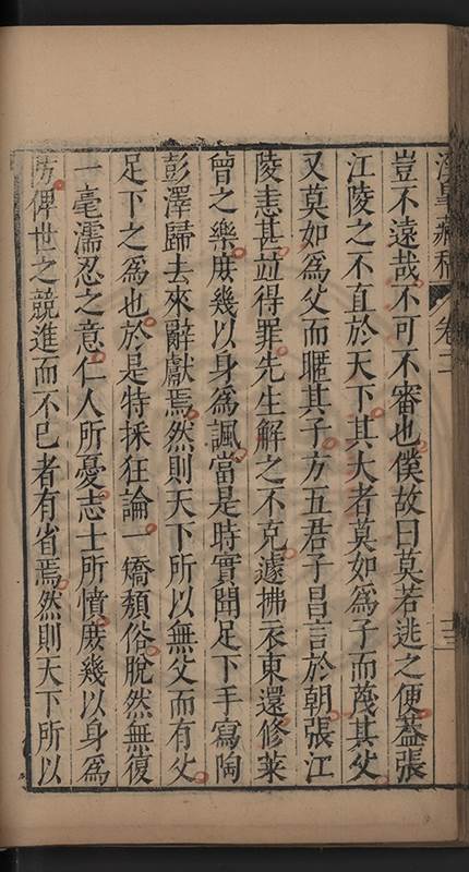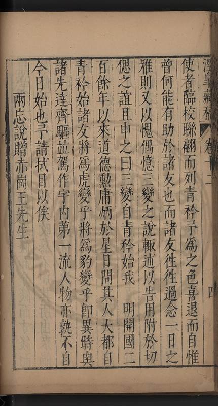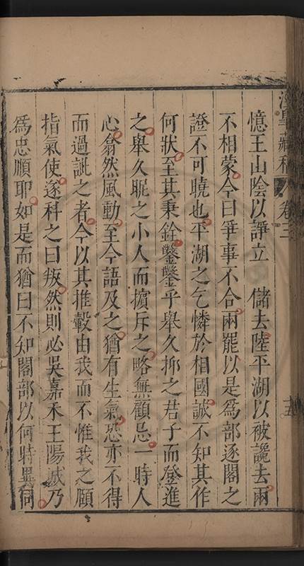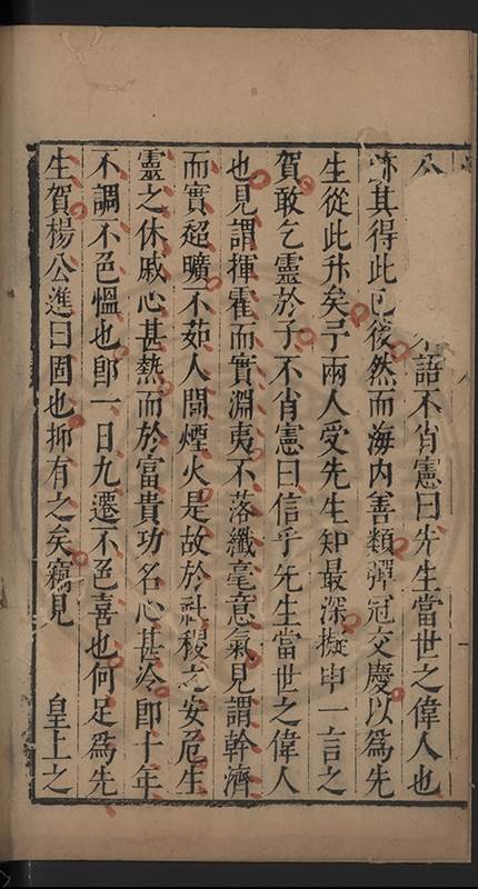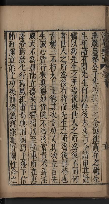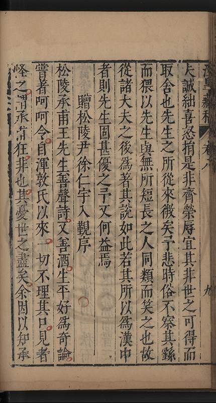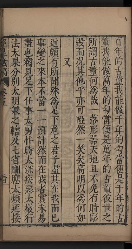 弟一日喟然發嘆予曰何嘆也弟曰吾嘆夫今人講學只是講學耳予曰何也曰任是天崩地䧟他也不管予曰然則所講何事曰在縉紳只是明哲保身一句在布衣只是傳食諸侯一句予爲俛其首又一日讀朱子集有曰海内學術之弊只有兩端江西頓悟永康事功若不竭力明辨此道無由得明謂予曰此弊於今亦然且昔也分而爲二今