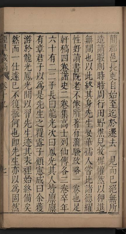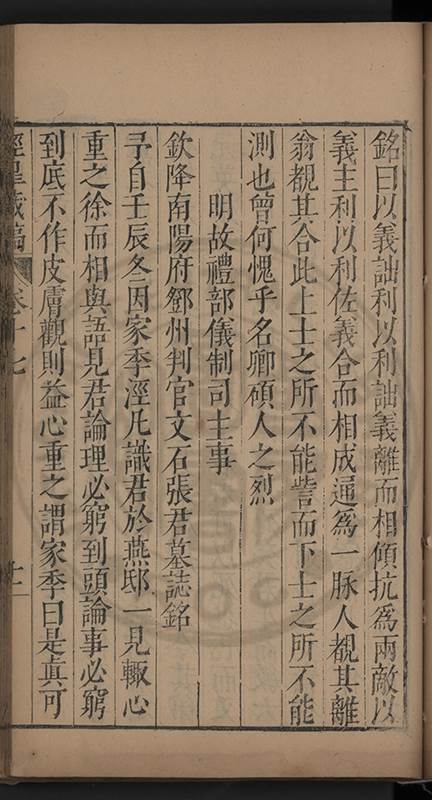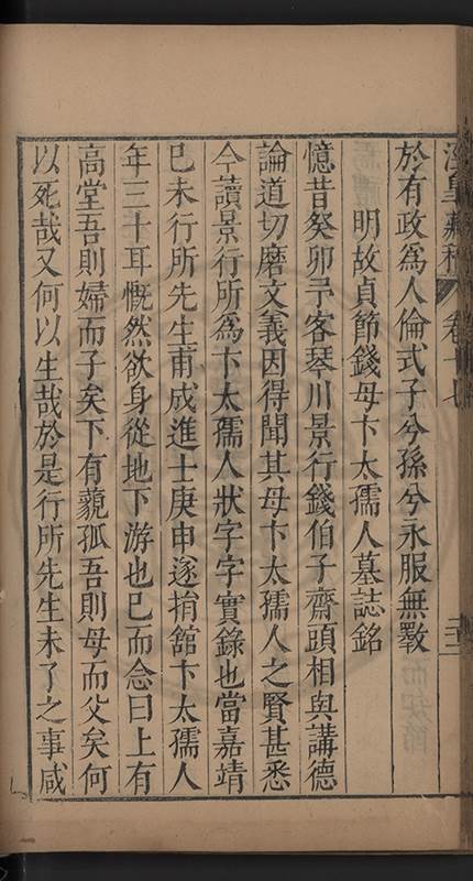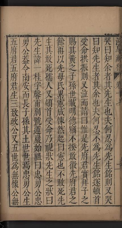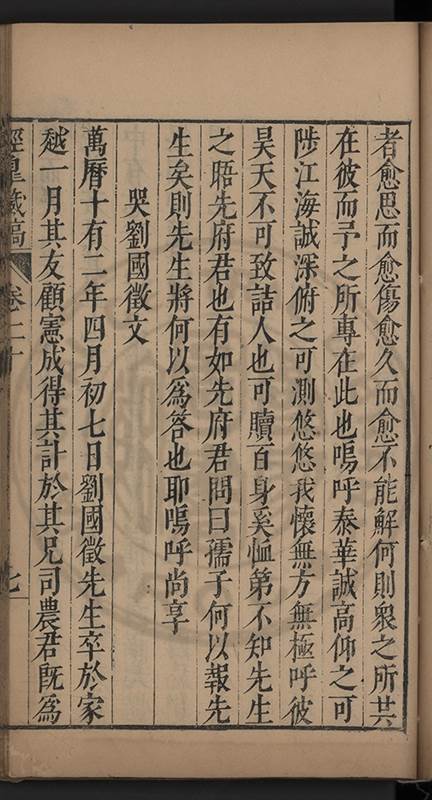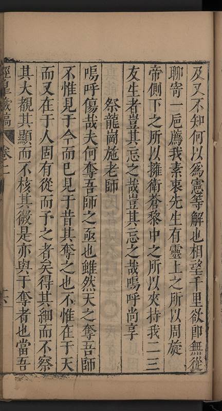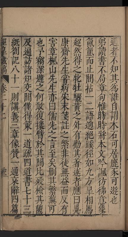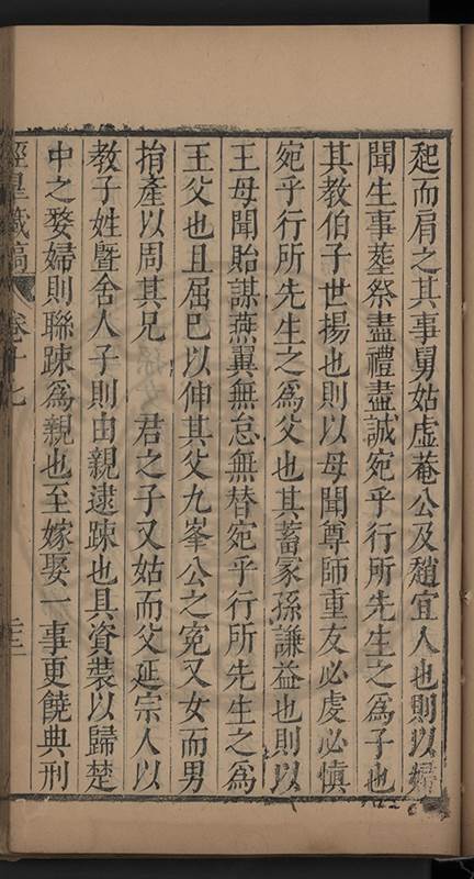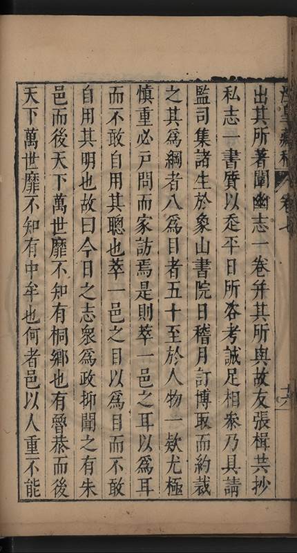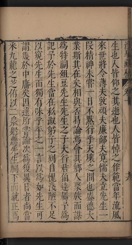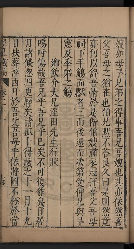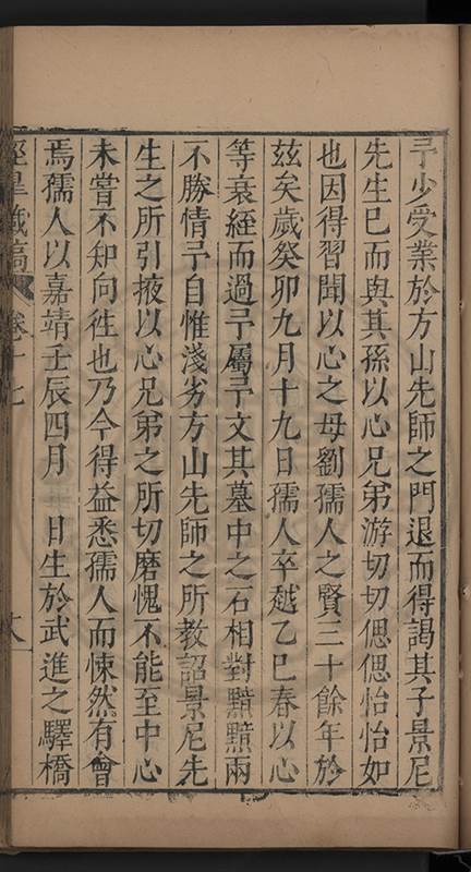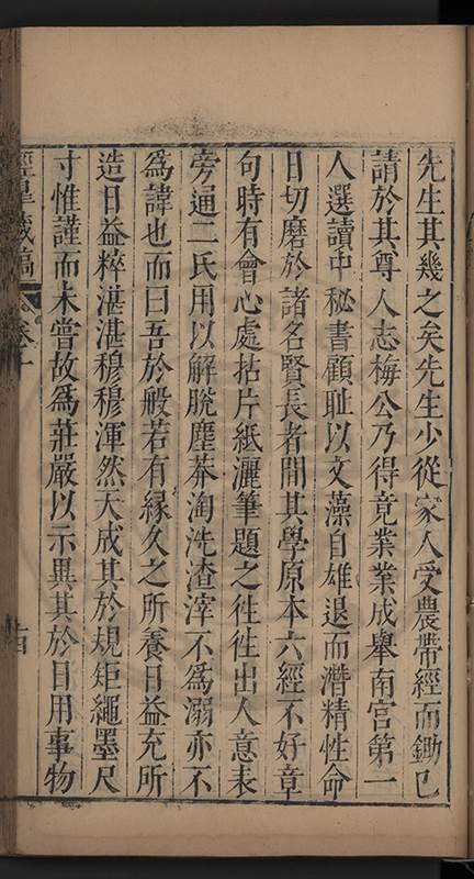 弟讀書不局章句惟時時將本文吟諷仿彿意象氤氲而止間拈一二語逈絕蹊徑如九方臯相馬超然得之牝牡驪黃之外有勸其著述者應曰吳康齋先生𡮢病宋末箋註之繁非徒無益而反有害章楓山先生亦曰儒先之言至矣删其繁蕪可也予竊深韙之何敢復攘臂於其間比歿檢其篋及遍訪諸知交間僅得䇿一道疏四道書七十三紙劄記八十一則講義三章像贊一通哀辭四篇