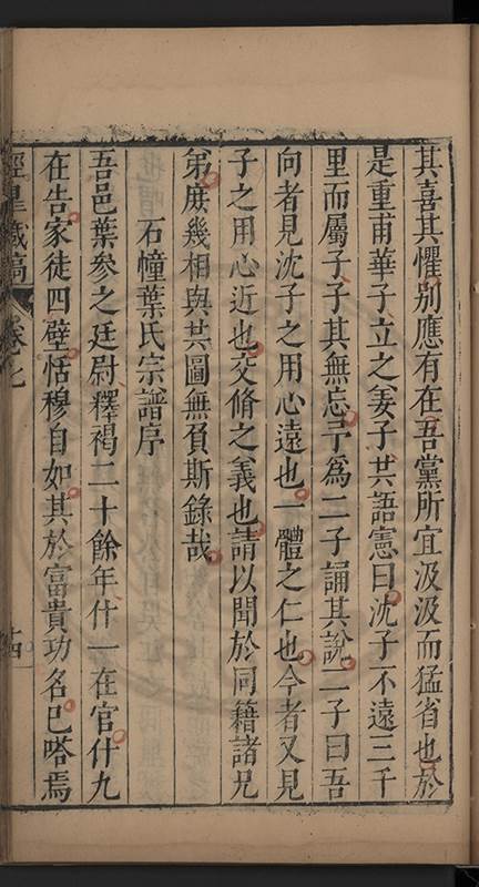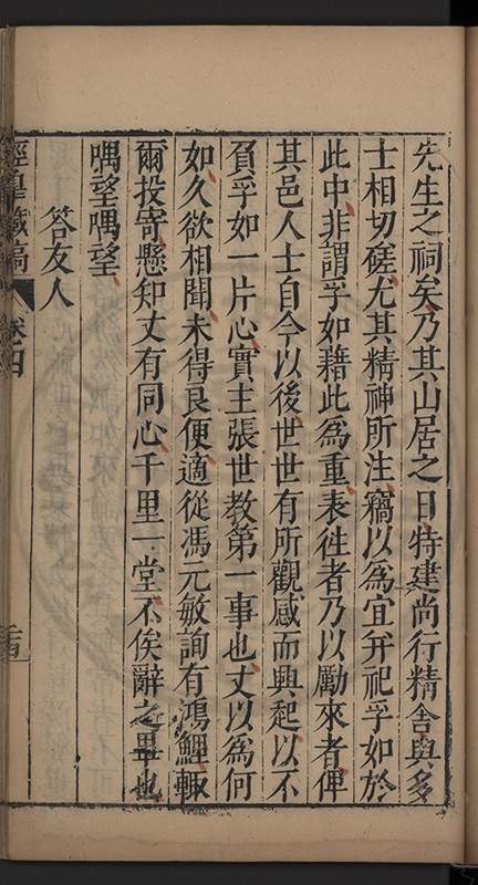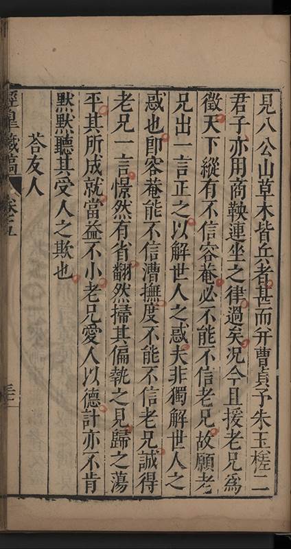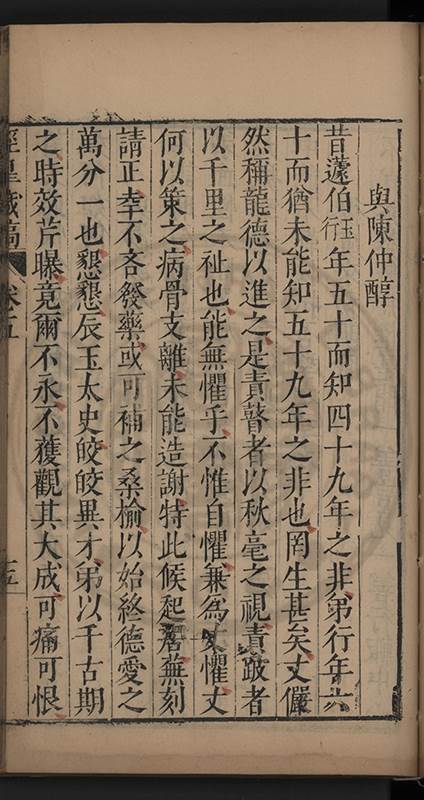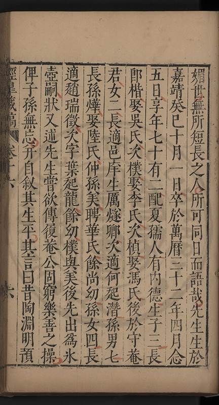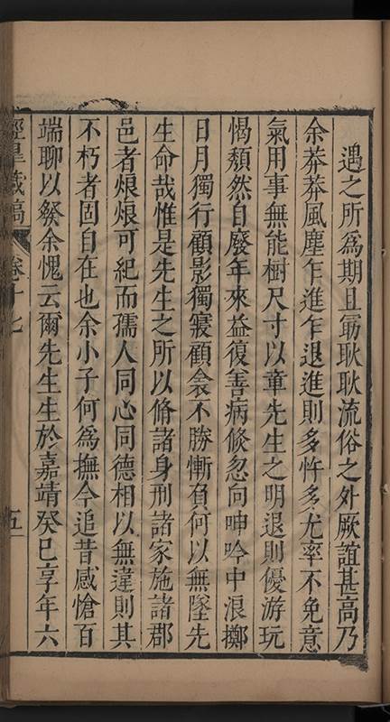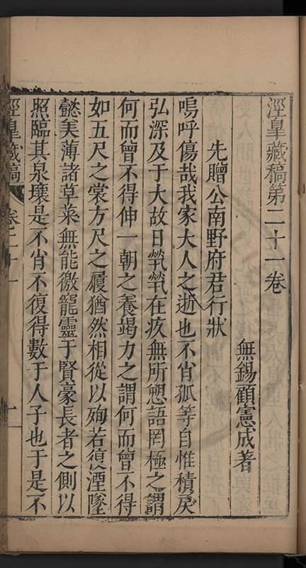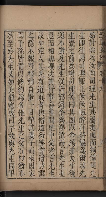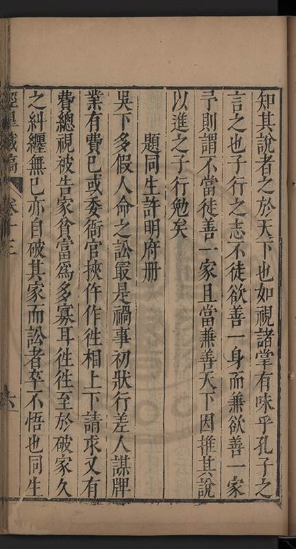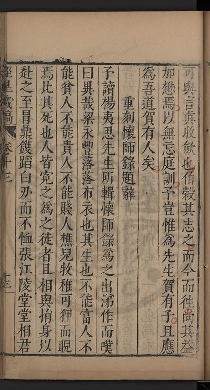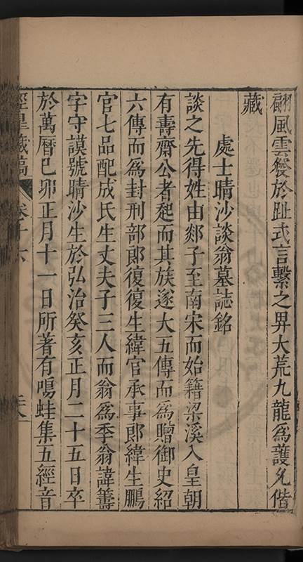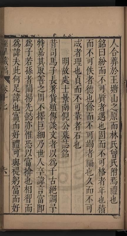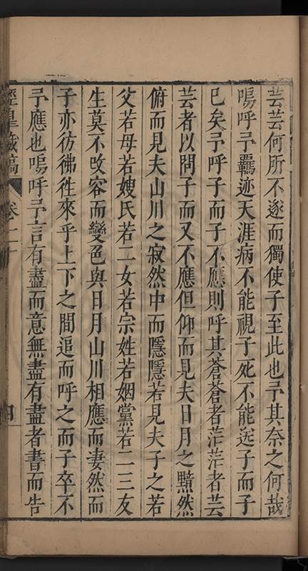 弟讀書不局章句惟時時將本文吟諷仿彿意象氤氲而止間拈一二語逈絕蹊徑如九方臯相馬超然得之牝牡驪黃之外有勸其著述者應曰吳康齋先生𡮢病宋末箋註之繁非徒無益而反有害章楓山先生亦曰儒先之言至矣删其繁蕪可也予竊深韙之何敢復攘臂於其間比歿檢其篋及遍訪諸知交間僅得䇿一道疏四道書七十三紙劄記八十一則講義三章像贊一通哀辭四篇