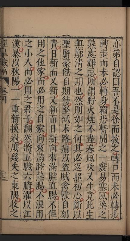 曰當暑絺綌一曰江漢秋陽一曰歲寒松柏因請曰這是箇鴛鴦譜乞兄拈示金針予曰弟明明滿盤托出何更問人設令有人還問汝譜鴛鴦的是誰其何以對我且櫛沐弟且去待此畨再攪得一夜不睡那時再作商議未晚弟大豁然曰是是是原來這事端的只是如此端的别無竒特端的無可疑也何用白日説夣自是精神凝一心境漸平動靜云爲日覺穩帖日覺安閑日覺輕省日覺簡易乃至死生之際都無纖毫粘帶天假之年尙安