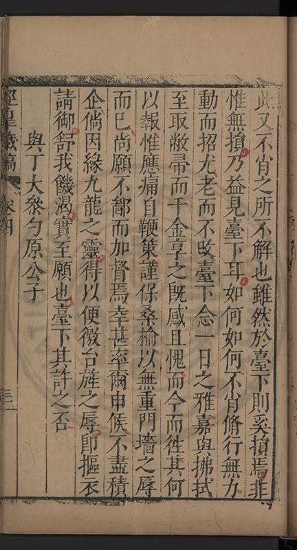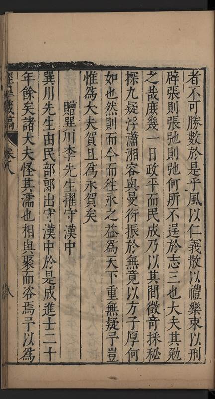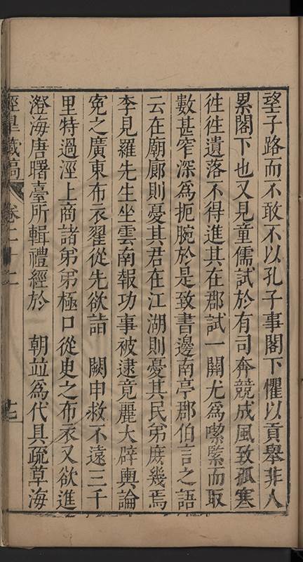望子路而不敢不以孔子事閣下懼以貢舉非人累閣下也又見童儒試於有司奔競成風致孤寒徃徃遺落不得進其在郡試一𨵿尤爲噄𦂳而取數甚窄深爲扼腕於是致書邊南亭郡伯言之語云在廟廊則憂其君在江湖則憂其民弟庻幾焉李見羅先生坐雲南報功事被逮竟麗大辟輿論寃之廣東布衣翟從先欲詣 闕申救不遠三千里特過涇上商諸弟弟極口從㬰之布衣又欲進澄海唐曙臺所輯禮經於 朝竝爲代具疏草海