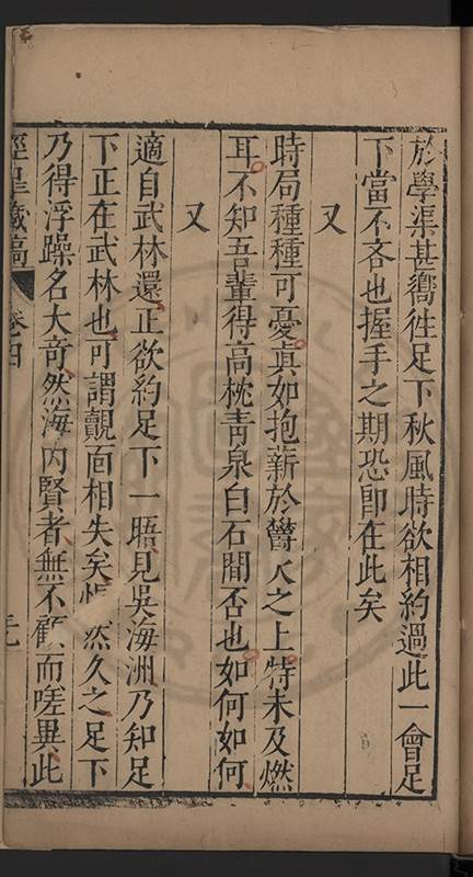 來這事只是如此别無竒特昨却多了一疑攪得一夜不睡至天明且如人欲適京水則具舟楫陸則具車騎徑向前去無不到者其間偶遇艱阻只須從從容容耐心料理若因此便爾著忙妄生懊惱甚者且以爲舟楫車騎之罪這個喚做騎驢怪驢又喚做騎驢覓驢展轉不已直教你東馳西騖二二三三被那些葛䕨纏弄到老竝無下落却只剰得一雙空手而歸豈不大悞予欣然首肯曰是是是弟遂出孔壇四景圖視予一曰暮春風咏一