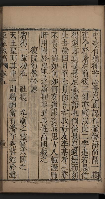 爲不躐位不捷徑耶且近時建言者每每有觸而云非無上事而喟然嘆也倘臨江父老罪無可矜則道瞻不言倘 皇上不廢郊祀則洪春不言倘何尙書起鳴不搆䧟𨐌左都自修則德新等不言倘邵給事庻不請申出位之禁則懋檜等不言倘戊子順天科塲毫無弊竇則桂等不言倘耿右都定向不逢迎當事而以先發後聞叅王御史藩臣則敷教不言何得詬建言者不啓蟄而雷鳴不嚮晨而雞號也其以今日時異勢殊既無嚴嵩張