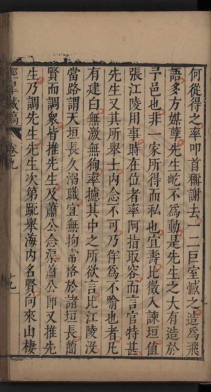 至良法美意徒以藉奸臣而資固寵忠臣義士所飲血椎心寧死不忍見此舉動以負 祖宗二百年養士之恩于地下已而考功郎趙公儕鶴司内計盡公不撓盡黜當路私人當路啣而計去之於是又與于公景素陳公員嶠賈公太石薛公玄臺張公文石各抗疏言之先是已丑薛玄臺因南都耿總憲定向以不送揭帖叅御史王公藩臣疏劾其阻塞言路當路大恚之座師内閣潁陽許公輙疏論玄臺吏科都給事陳海寧復望風排撃弟