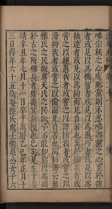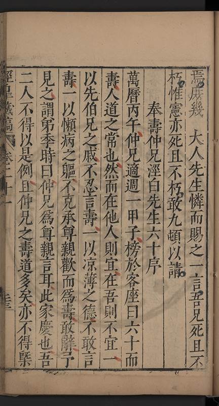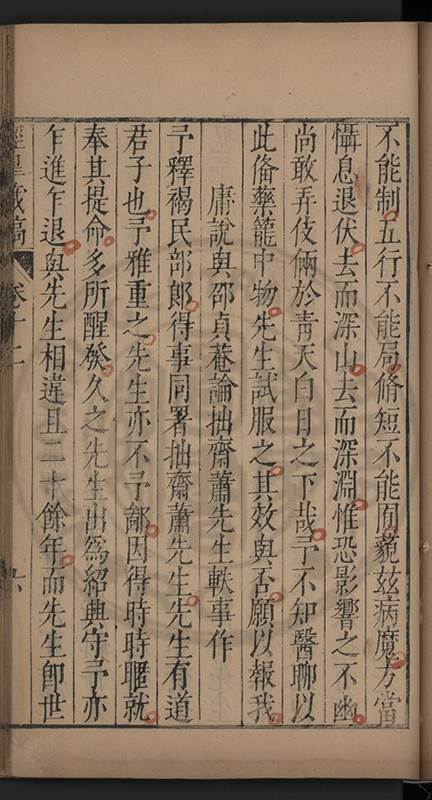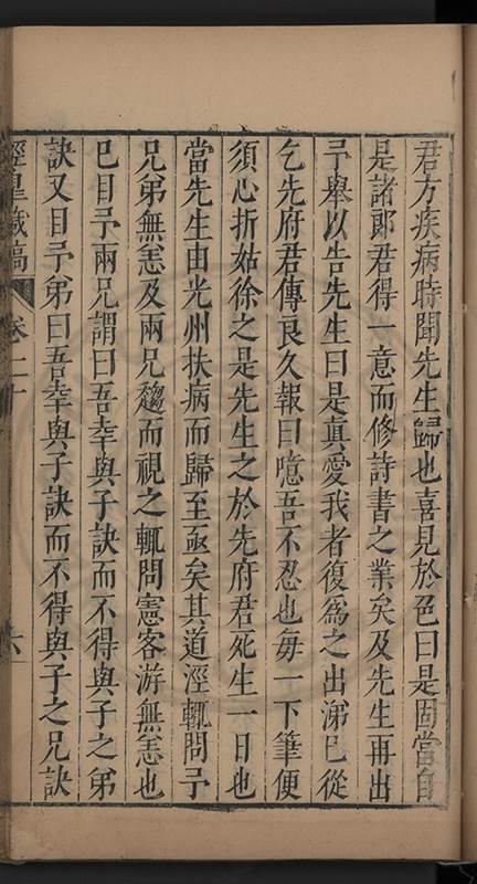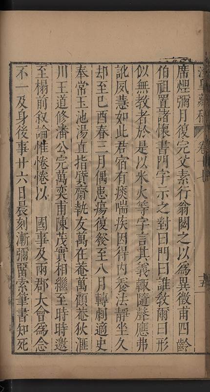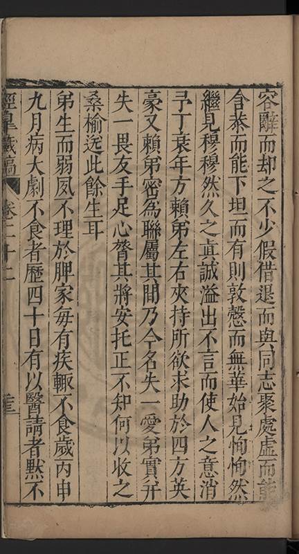 荅有以祈禱請者叱去之舉家憂惶莫知計所出予以間問曰弟中何如弟曰亦只如常曰有痛否曰無之曰有所欲言乎曰何言此時弟只有凝神定氣循循黙黙以待天機若攙入他念便是自暴自棄且欲爲此身計此身非我有欲爲子孫計一人各有一乹坤吾無與也予服其達識久之竟愈嗣後亦時發或一月愈或半月愈或旬日愈予竊喜以爲精神漸固血氣漸堅晚景當益隹無虞矣乃去歲夏五月偶感微疾至六月二十一日竟不