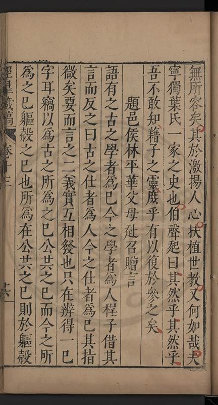 居正之威福又無鄢趙曾王諸人之阿比何得有楊繼盛艾穆鄒元標之慷慨夫以堯舜之世克艱不輟誨慢游不輟規贊襄不輟勸損益不輟警其亦何𡮢不慷慨也豈如彼狃于陳三謨曾士楚之從容便以慷慨爲竒而謂堯舜之世無得有是乎且彼乞墦丐子反復趨附以苟饜足自其常態宰執大臣富貴已極豈有未饜何苦爲彼曹所弄徒以益人之富貴而損已之名實哉蓋孔子告顔淵以爲邦深嚴佞人之戒彼以方今第一佞人首置