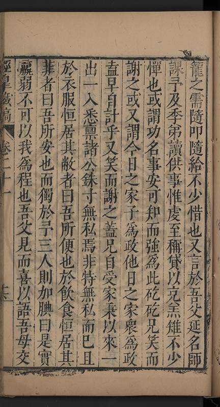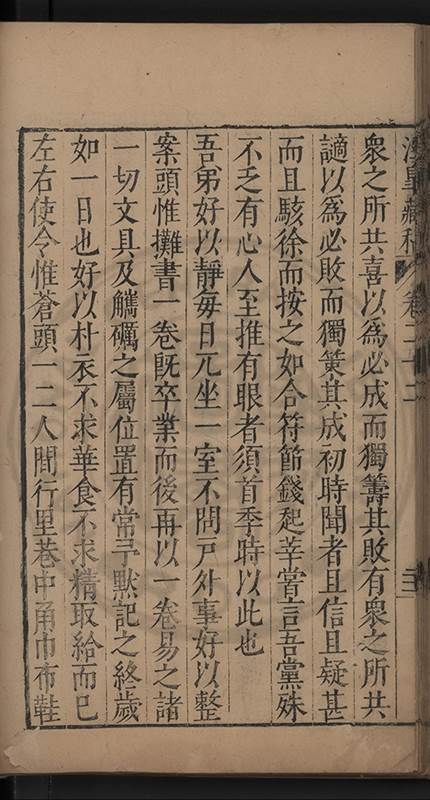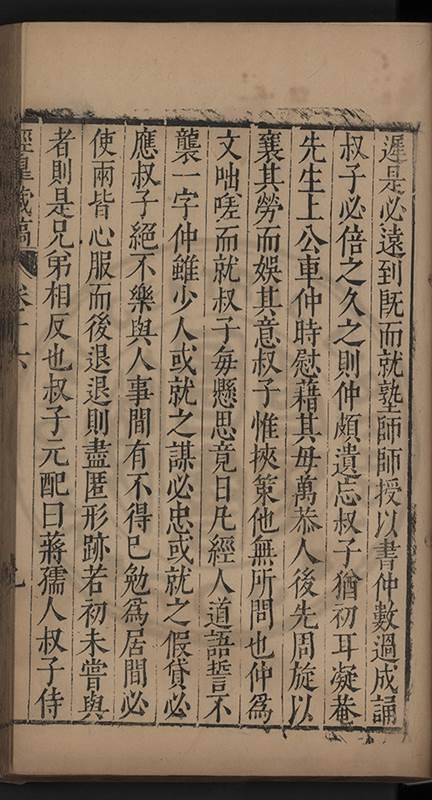 吾弟好以靜每日兀坐一室不問戸外事好以整案頭惟攤書一卷既卒業而後再以一卷易之諸一切文具及觽礪之屬位置有常予黙記之終歲如一日也好以朴衣不求華食不求精取給而已左右使令惟蒼頭一二人間行里巷中角巾布鞋
