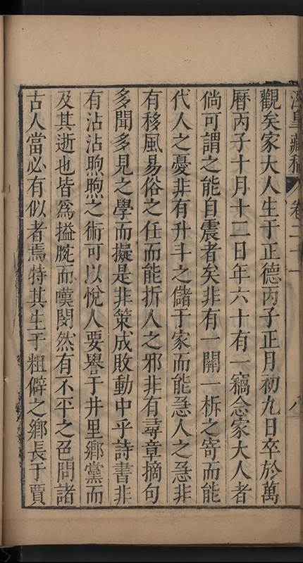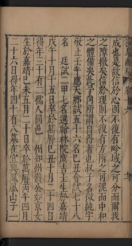 歔且曰吾父居恒好稱范文正公之爲人津津不去口此是萬物一體胚胎念庭周師分俸佐讀命無受此是鳳凰翔於千仞風格吾兄弟當無失此意癸未舉南宮遂移病歸則以吾母善病也丙戍成進士坐言事罷會南太僕繼山沈公南臺警亭陳公按院厚齋荆公先後奏薦奉 㫖起江西南康府教授特懇於按院雍野李公代疏請致仕又以吾母年且望七愈善病也予兄行中居三僅長弟四年而弟事予甚恭不减於事兩兄當歲乙