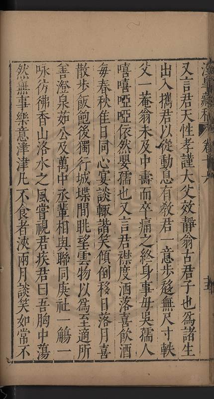 容辭而却之不少假借退而與同志聚處虚而能含恭而能下坦而有則敦慤而無華始見恂恂然繼見穆穆然久之真誠溢出不言而使人之意消予丁衰年方賴弟左右夾持所欲求助於四方英豪又賴弟密爲聯屬其間乃今名失一愛弟實并失一畏友手足心膂其將安托正不知何以收之桑榆送此餘生耳