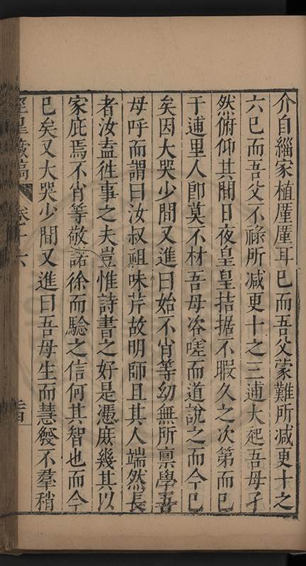 吾弟天性孝友雅爲吾父吾母所鍾愛𨿽曰憐其少亦其一叚誠意懇惻深至有以當吾父吾母之心也不肖舉丙子吾父遂棄養每語及輙相對欷