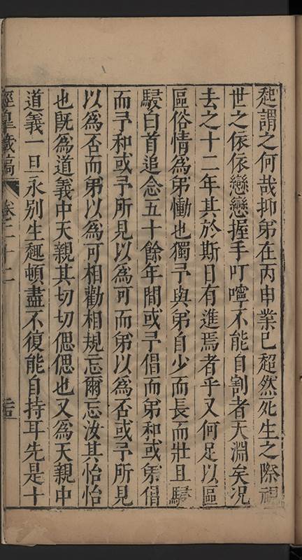 起謂之何哉抑弟在丙申業已超然死生之際視世之依依戀戀握手叮嚀不能自割者天淵矣况去之十二年其於斯日有進焉者乎又何足以區區俗情爲弟慟也獨予與弟自少而長而壯且駸駸白首追念五十餘年間或予倡而弟和或弟倡而予和或予所見以爲可而弟以爲否或予所見以爲否而弟以爲可相勸相規忘爾忘汝其怡怡也既爲道義中天親其切切偲偲也又爲天親中道義一旦永别生趣頓盡不復能自持耳先是十