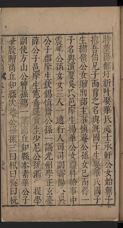 時塟陽鄱圢新阡娶華氏處士承軒公女始無子抱吾伯兄子而育之名與溉國子生娶華氏國子生繡嶺公女贈刑部主事慎菴公孫女已而得一子名與演娶吳氏邑庠生揚華公女禮科給事中震華公孫女女三人一適行人司司副霽陽公吳公子郡庠生欽錫慎齋公孫一議光州學正玄臺薛公子邑庠生憲垂選貢生少尼公孫浙江提學副使方山公曾孫殤一議商丘知縣本素華公子肇殷贈商丘知縣次菴公孫孫三曰㭄曰檖曰杬