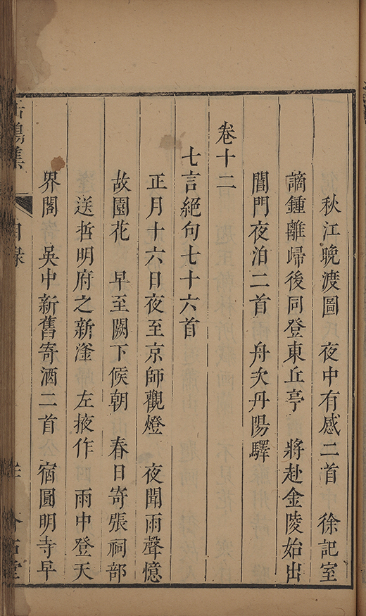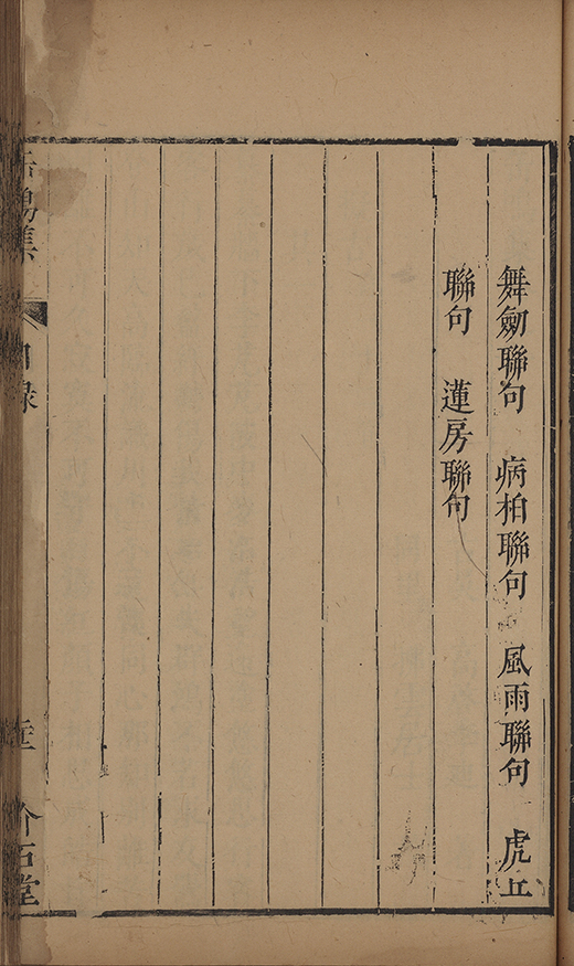 戰成瘧功收刺虎奇(啟)志感聞雞惡暫停月徘徊(憲)