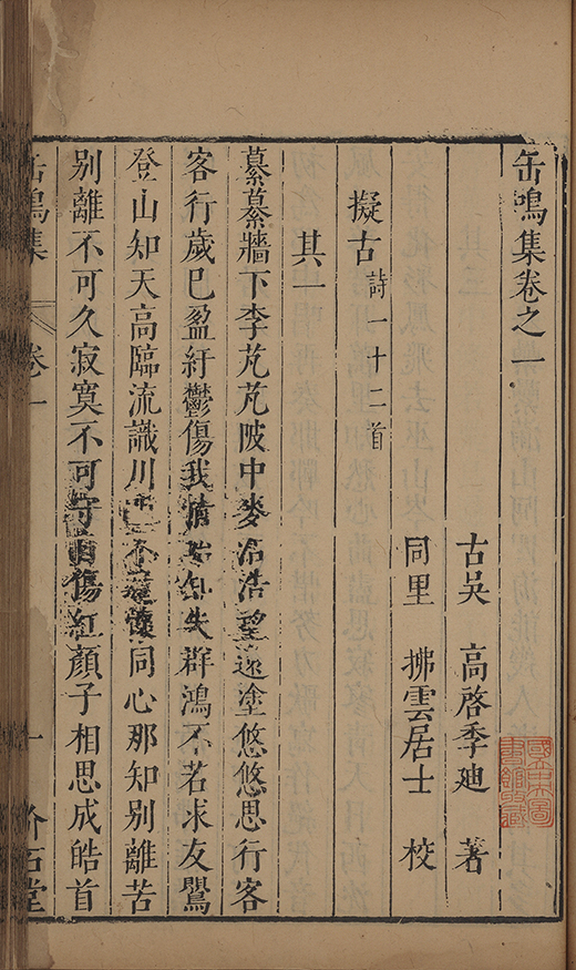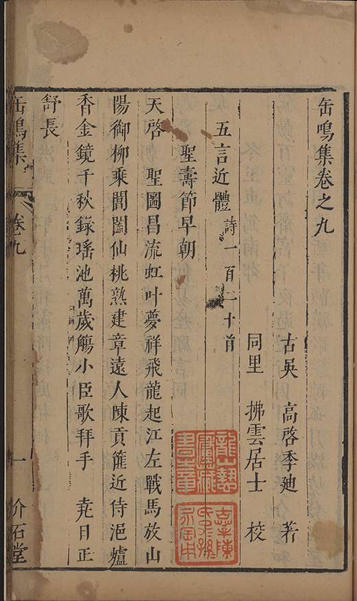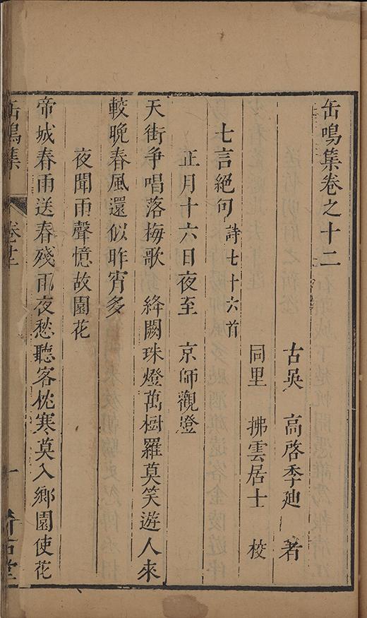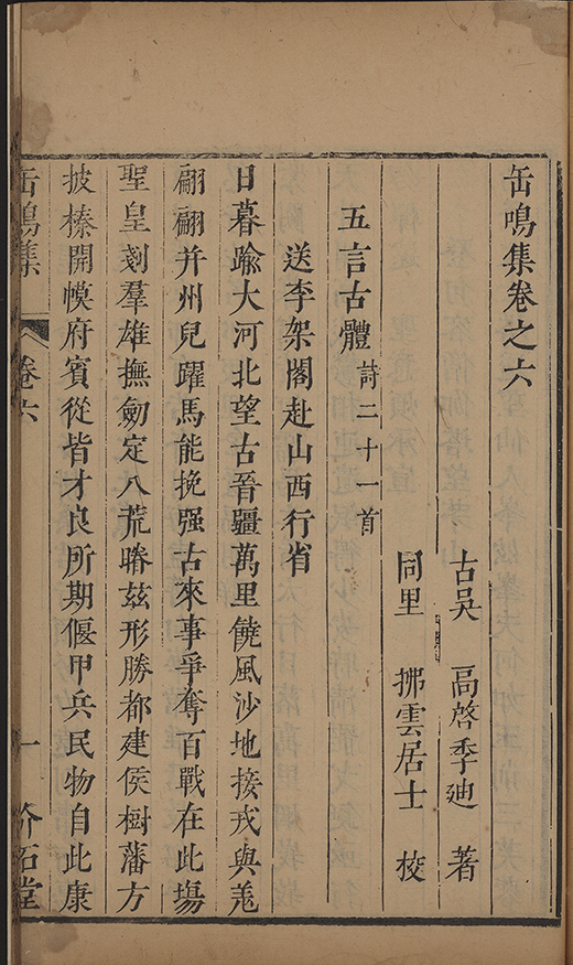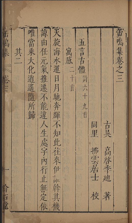 洪武史官高季廸氏有詩千篇號缶鳴集其夫人之