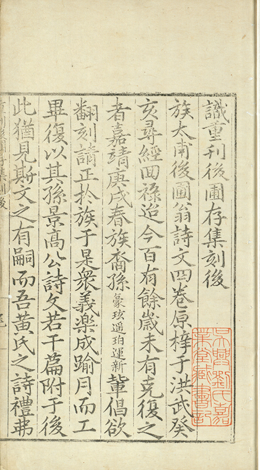 族太甫後圃翁詩文四卷原梓于洪武癸
