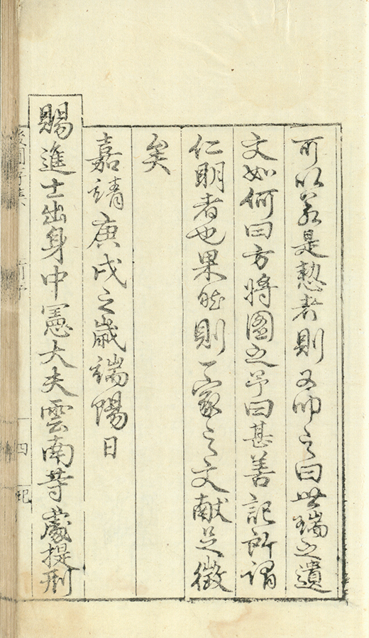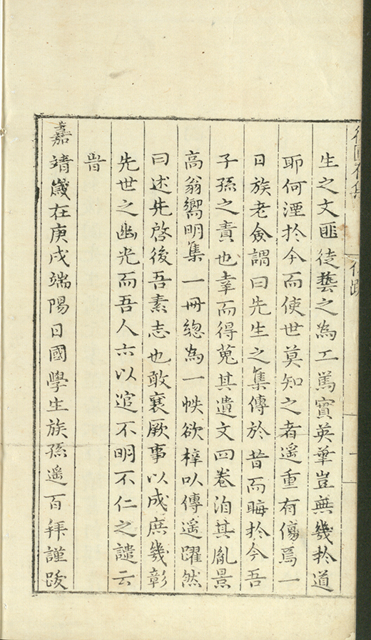 嘉靖嵗在庚戌端陽日國學生族孫遥百拜謹跋