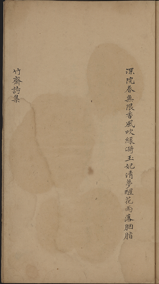 竹齋詩集一冊殘缺不全雜諸亂書堆中主人