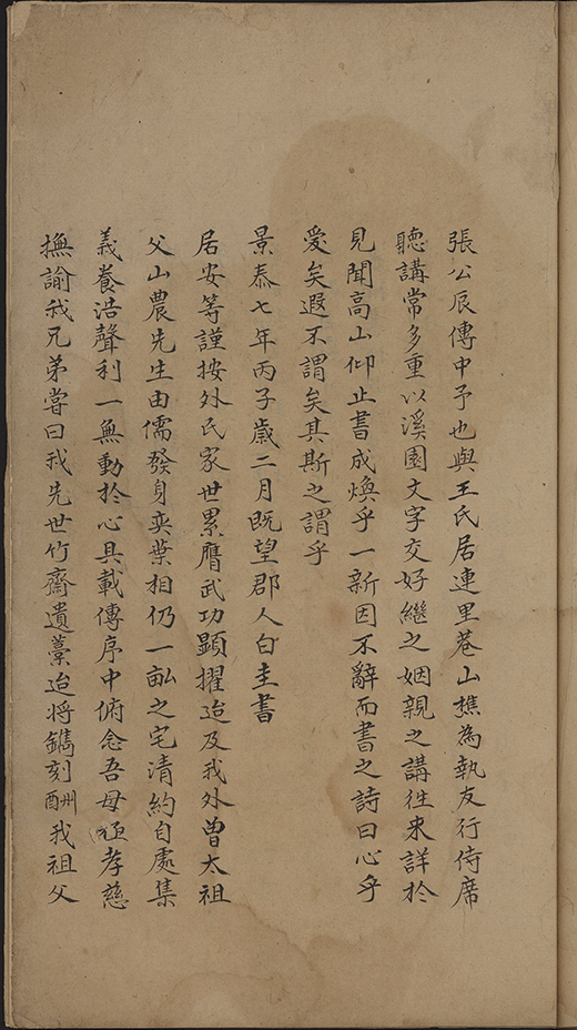 張公辰傳中予也與王氏居連里巷山樵為執友行侍席