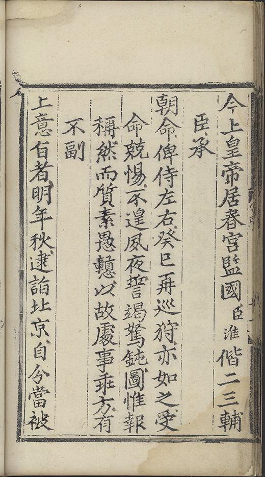 皇太子監國朝夕左右付託隆重