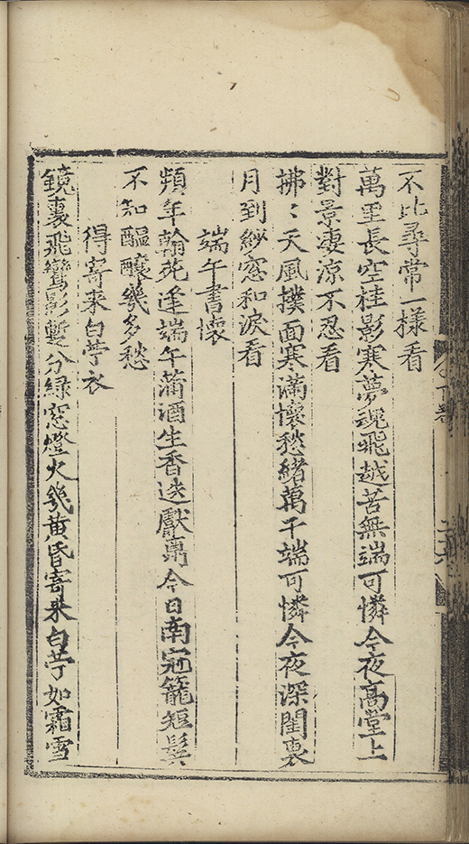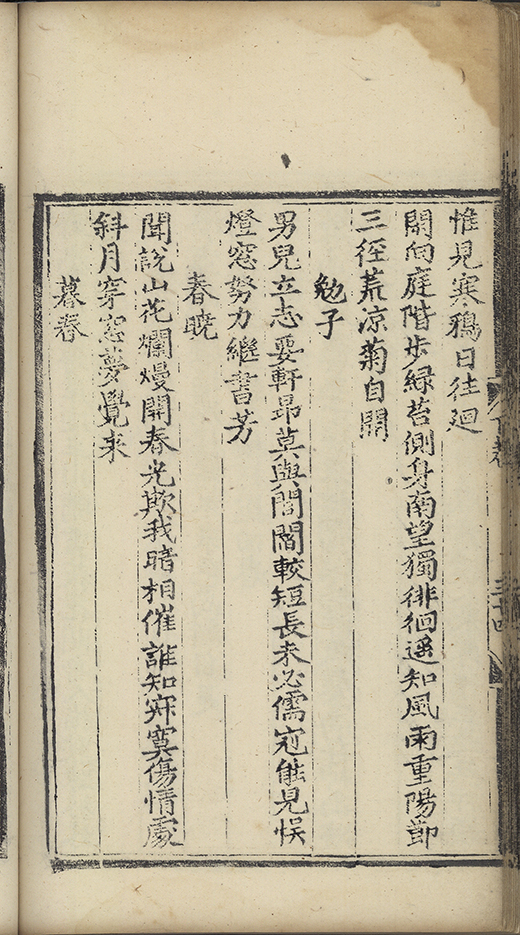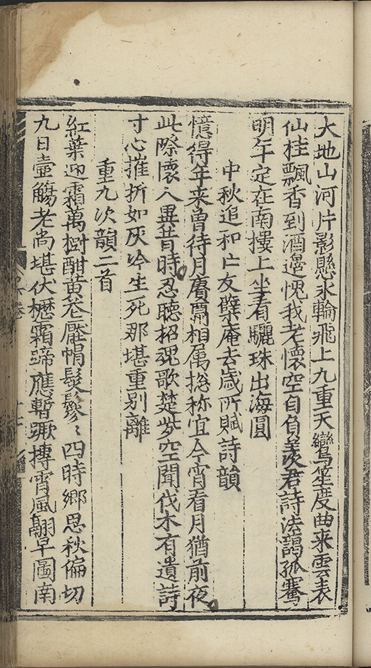 正龍山佳㑹集望庭闈無限傷悲任淚雨縁腮落将愁