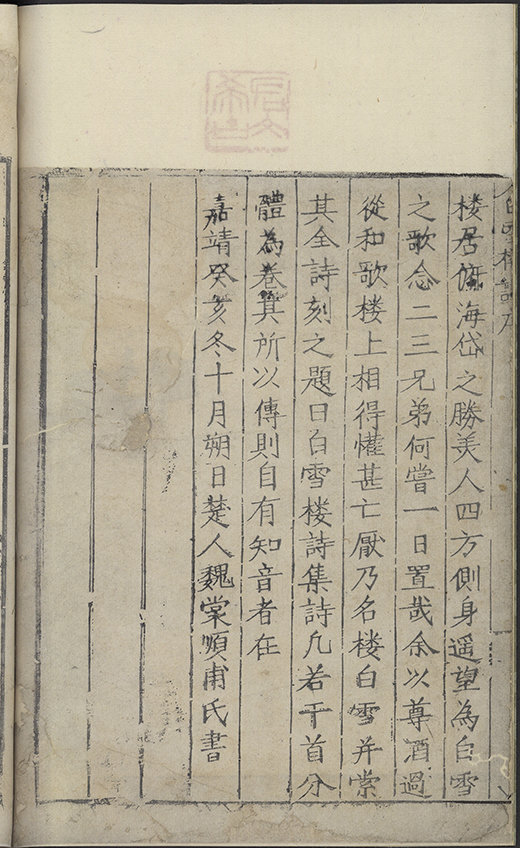 嘉靖癸亥冬十月朔日楚人魏棠順甫氏書
